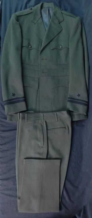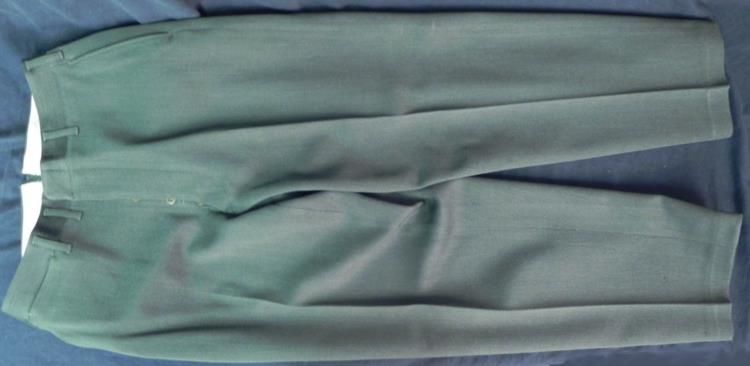 WWII US NAVY GREEN UNIFORM & PANTS-TAILOR MADE---MEDIUM SIZE-TAILOR LABEL "HOUSE OF WORSTED-TEX