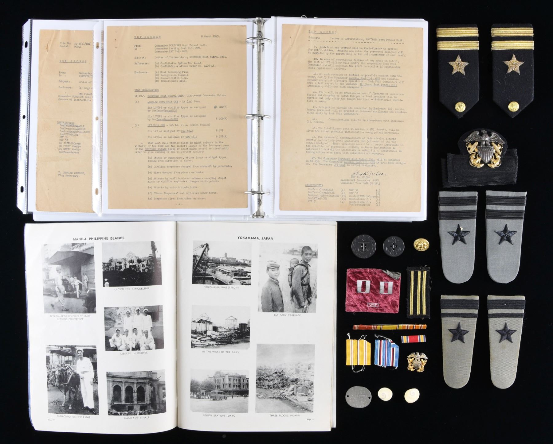 WWII US NAVY INSIGNIA, DOCUMENTS, INVASION MAPS,