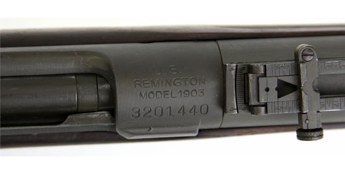 WWII US REMINGTON MODEL 1903 RIFLE Barrel stamped R.A. 7-42. Type: Rifle Manufacturer: Remington Model: 1903 Caliber / Gauge: 30-06 Barrel Length: 24" Serial Number: 3201440 Condition: Bore is good, overall 80%.