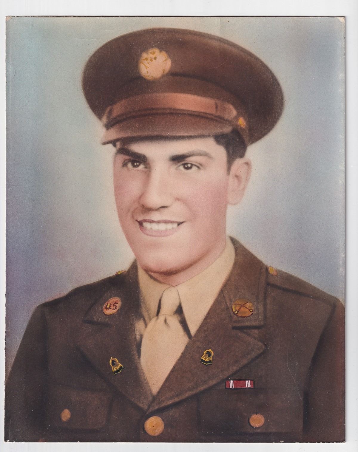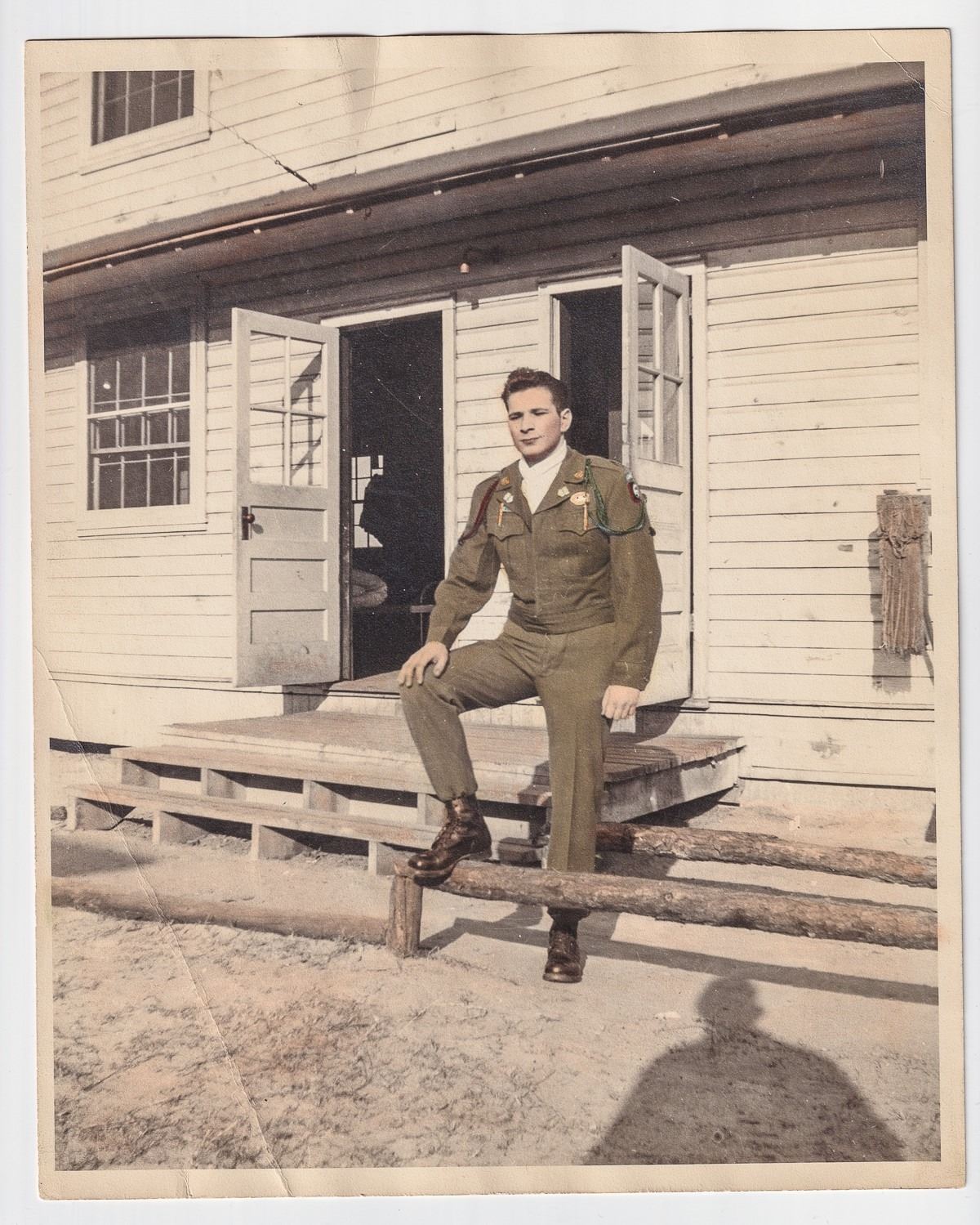 Group of eight WWII soldier portraits, hand colored photographs, approx. 8 x 10 inches each.