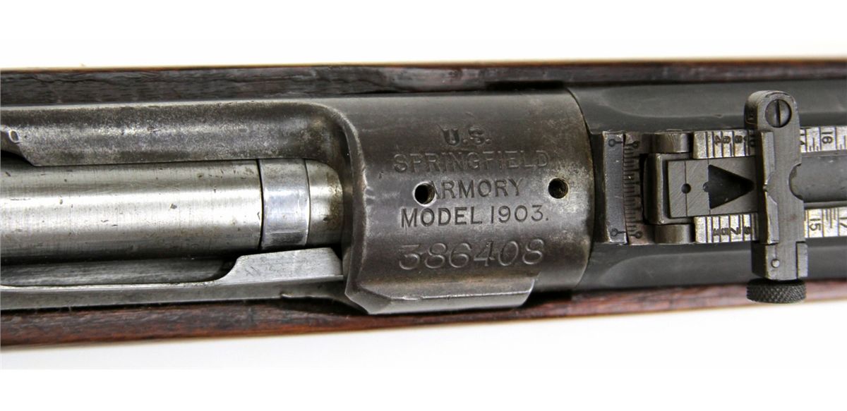 WWII US SPRINGFIELD ARMORY MODEL 1903 RIFLE Barrel stamped R.A. 6-44. Type: Rifle Manufacturer: Springfield Model: 1903 Caliber / Gauge: 30-06 Barrel Length: 24" Serial Number: 386408 Condition: Bore is good, overall 85%.