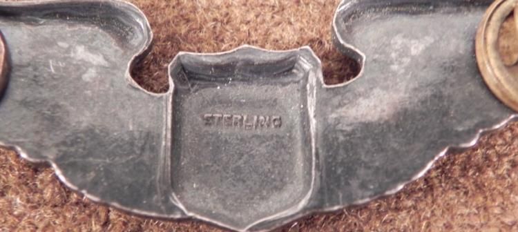 WWII USAAF-AIR FORCE PILOT WINGS-STERLING-CRIMP BACK-ORIGINAL- 3 INCH * GREAT AGE PATINA *