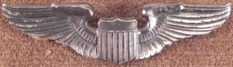 WWII USAAF-AIR FORCE PILOT WINGS-STERLING-CRIMP BACK-ORIGINAL- 3 INCH * GREAT AGE PATINA *