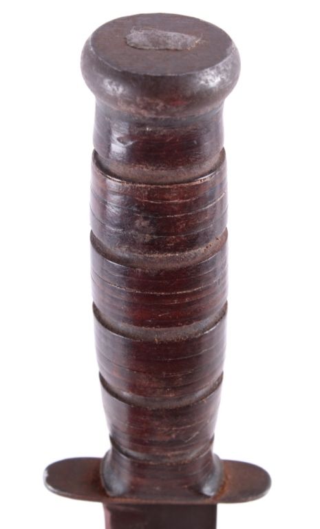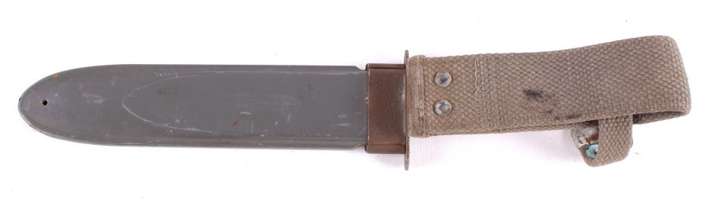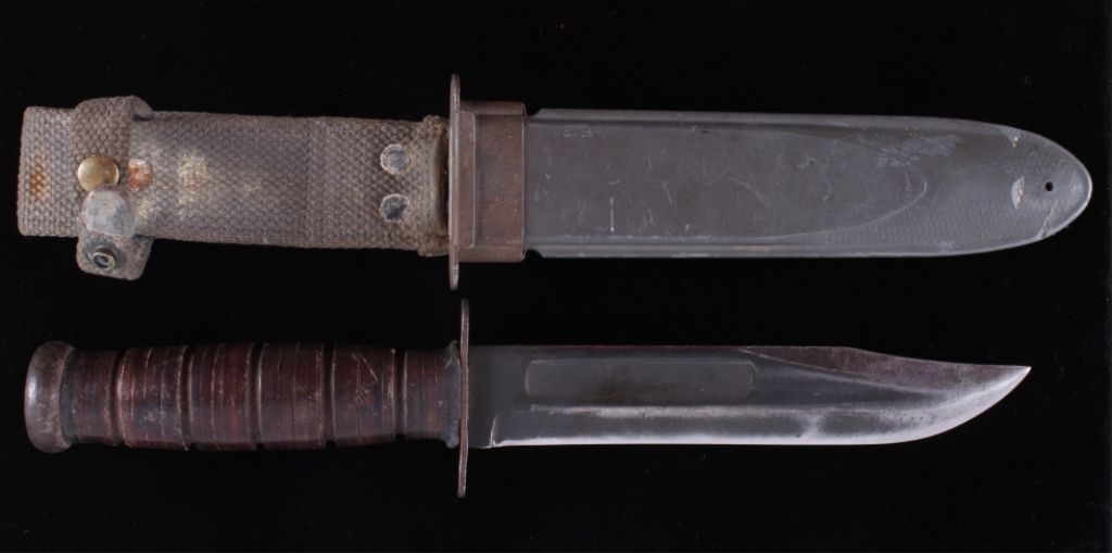 This is an original World War II United States Navy MK2 Ka-Bar Paratroopers fighting knife. The knife is marked "KA-BAR USN MK2". Leather grip. This is a rare Paratroopers fighting knife and is in overall good condition with the scabbard. The knife is 12" with a 7" blade.