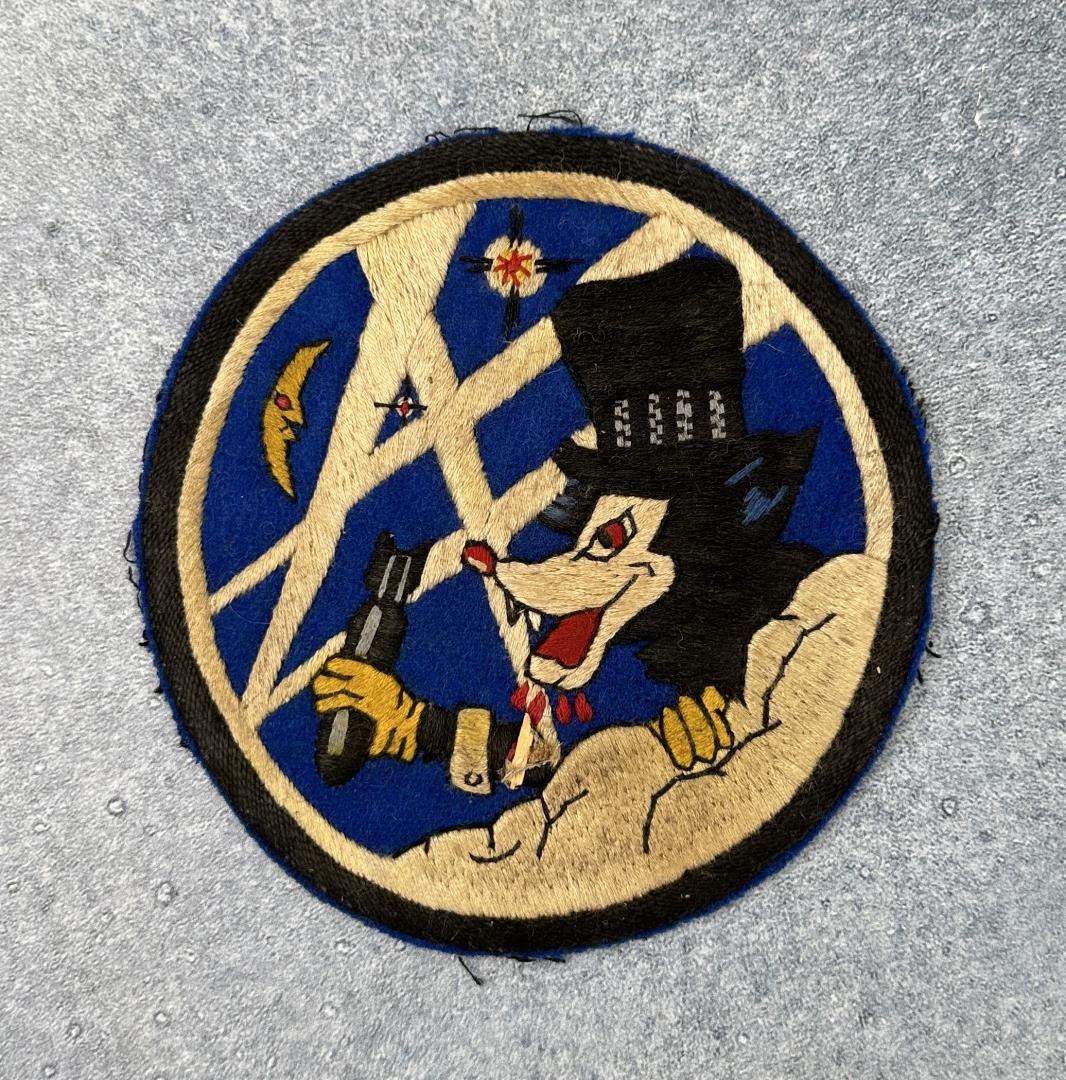 Official patch that changed to the Disney character type wolf with top hat in clouds holding a bomb. Measures 5 1/5" in diameter.