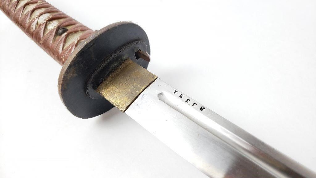 Iron Tsuba version. Numbers matching sword and scabbard, has never been taken apart. Exceptional example. Straight and honest, unlike most.