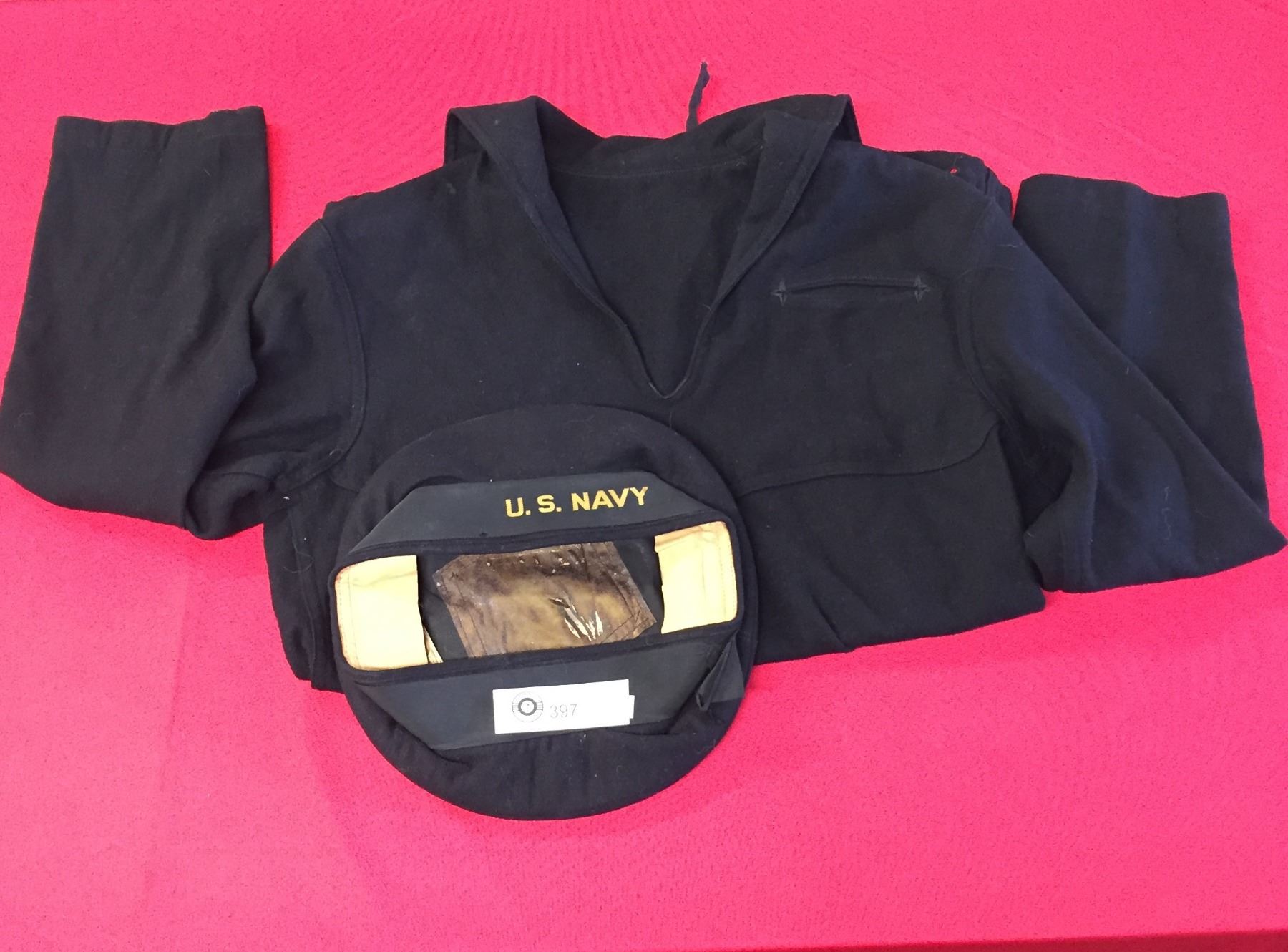 WWII WW2 US Navy Flat Top Hat and Top. Manufactured by Naval Clothing Factory