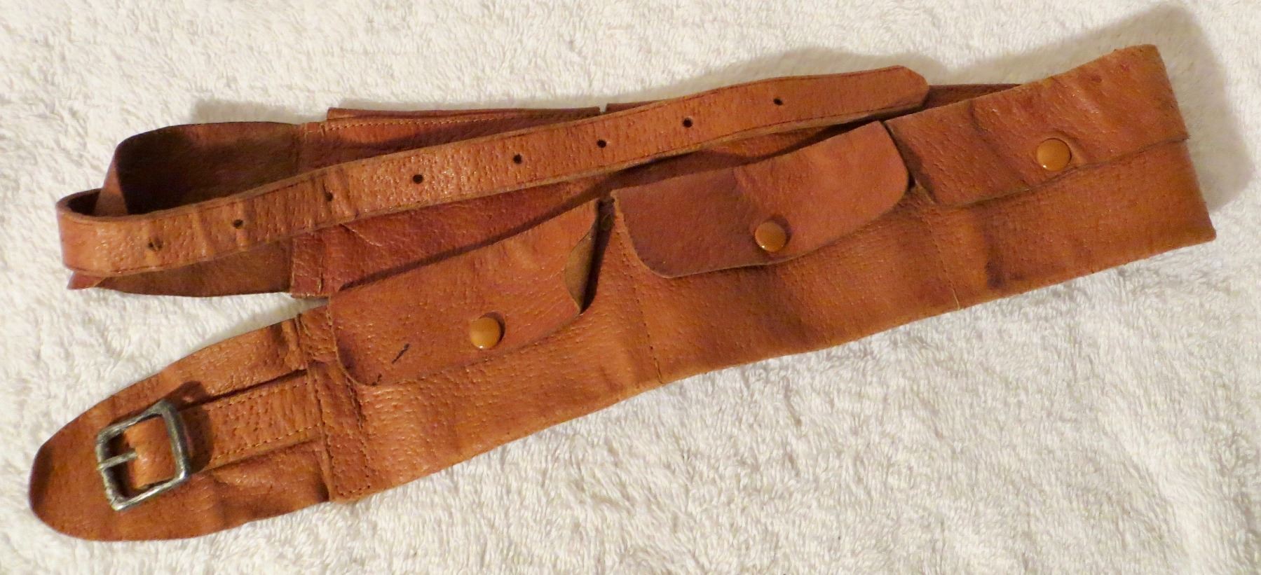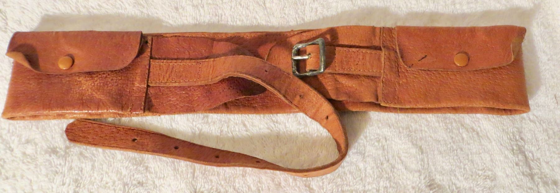 WWII leather money belt with different compartments - 47" total length - 28"centre part