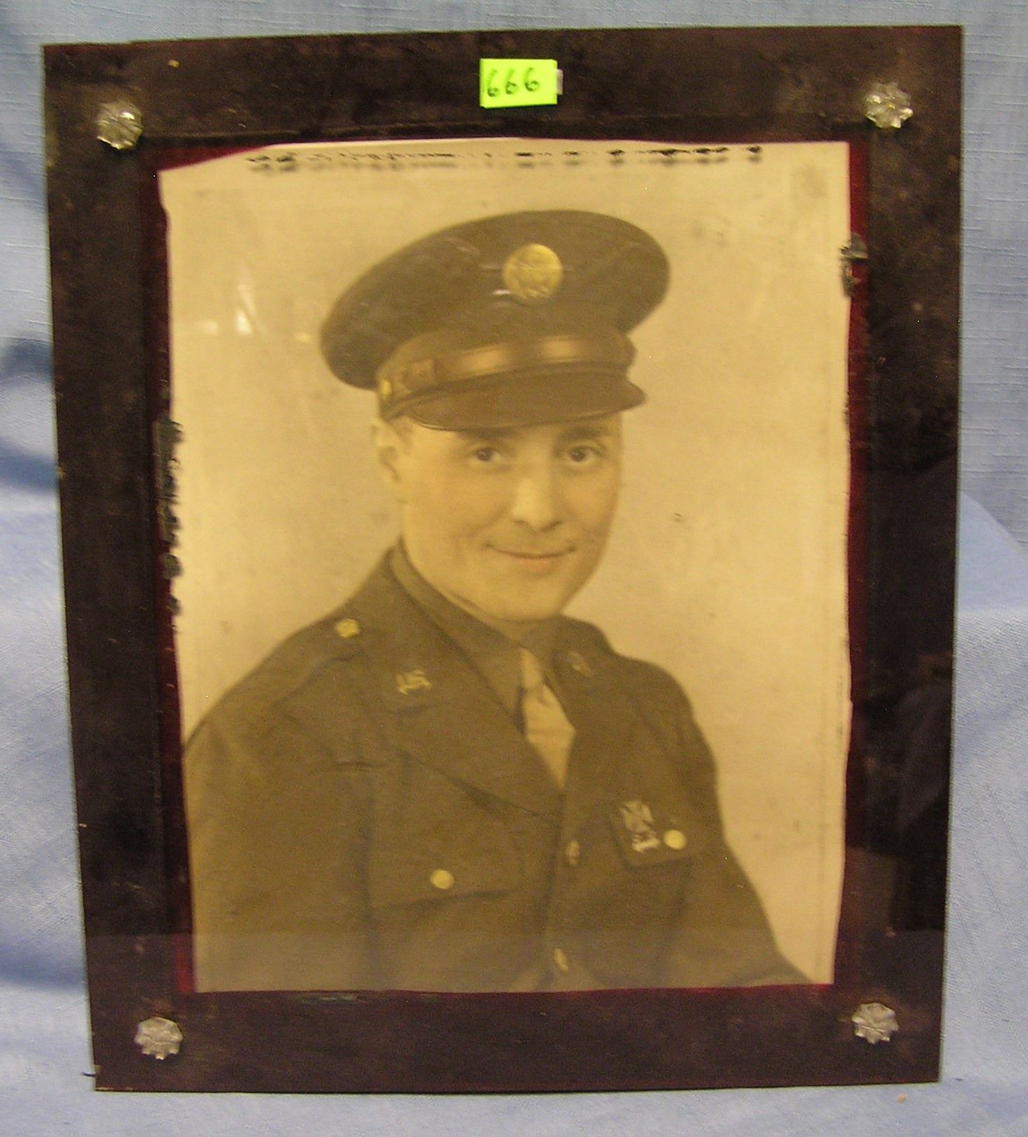 Great early WWII officers photo in heavy glass frame est. value $75.00-$100.00