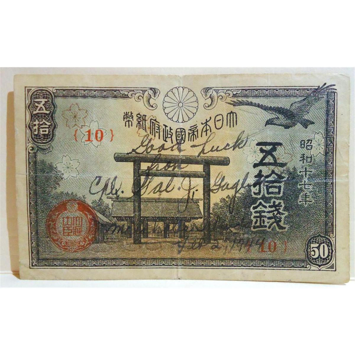 WWll 50 Yen Note 1944 SIGNED By US Cpl, Sal J.