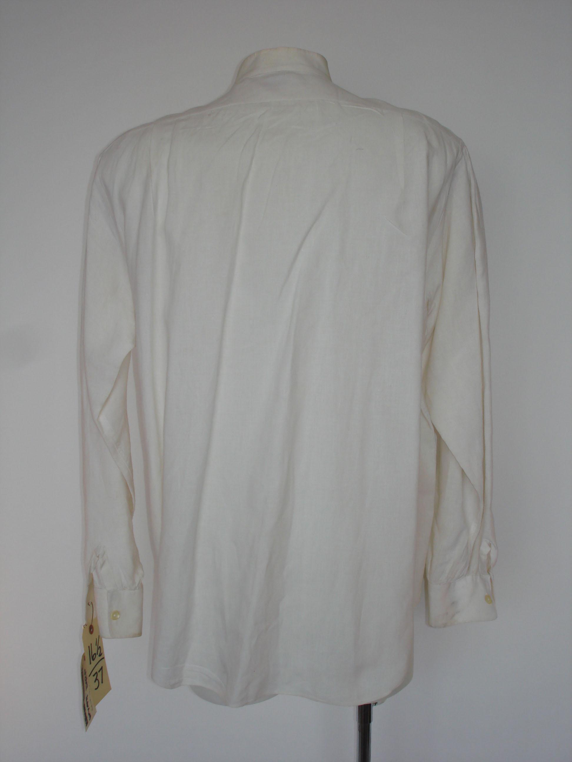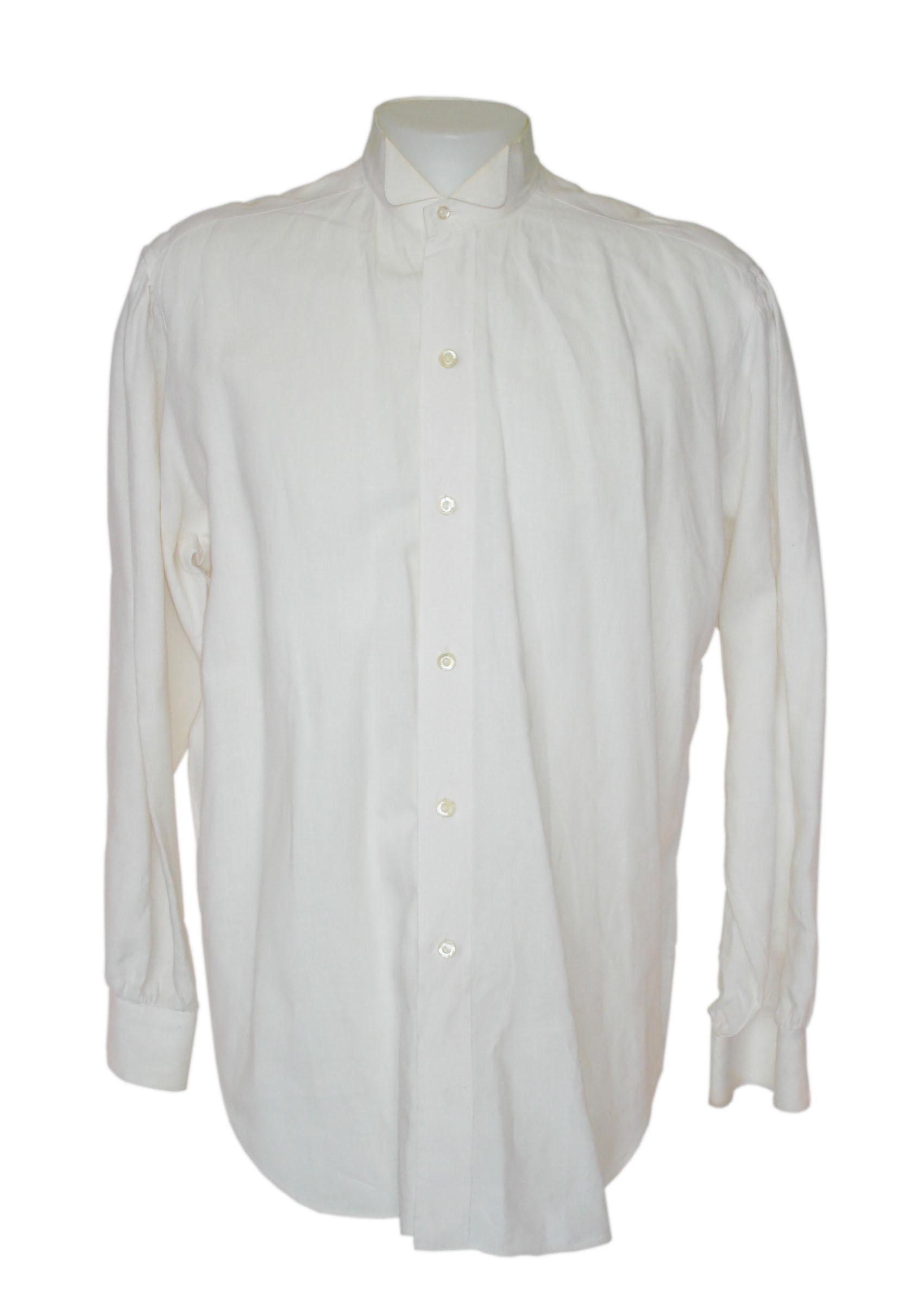 WYATT EARP (1994) - This white long sleeve dress shirt was worn by the character Nicholas Earp portrayed by legendary actor Gene Hackman in the 1994 motion picture WYATT EARP starring Kevin Costner, Dennis Quaid, and Michael Madsen. Mr. Hackman wore the shirt in a scene near the beginning of the film when Nicholas has dinner with his family. The shirt was custom tailored for use by Mr. Hackman and comes complete with the original Anto Shirtmakers tag with the initials GH and production date August 1993. The name GENE HACKMAN and production name WYATT EARP handwritten in the collar. The garment is in excellent screen worn condition and is accompanied by a letter of authenticity from the costume house. WYATT EARP was nominated for an Academy Award for Best Cinematography in 1994.
