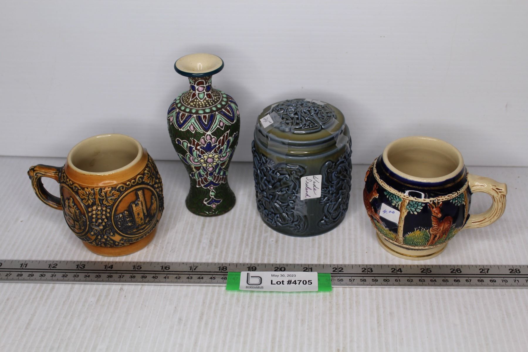 Wade Container w/Lid - Ornate Vase - (2) Steins