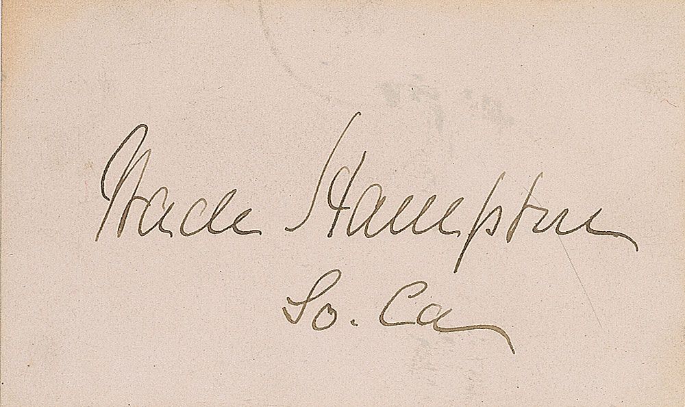 Confederate military officer and politician (1818–1902) who replaced J. E. B. Stuart as Lee’s Chief of Cavalry following Stuart’s death on the battlefield. Hampton later served as governor and senator from South Carolina. Ink signature, “Wade Hampton, So. Ca.,” on an off-white 3 x 1.75 card. In fine condition, with a light crease to the top.