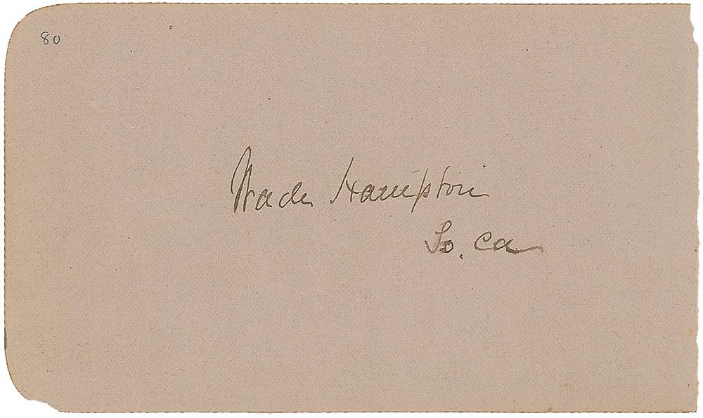 Confederate military officer and politician (1818–1902) who replaced J. E. B. Stuart as Lee’s Chief of Cavalry following Stuart’s death on the battlefield. Hampton later served as governor and senator from South Carolina. Ink signature, “Wade Hampton, So. Cal,” on a light beige 5 x 3 album page. In fine condition.