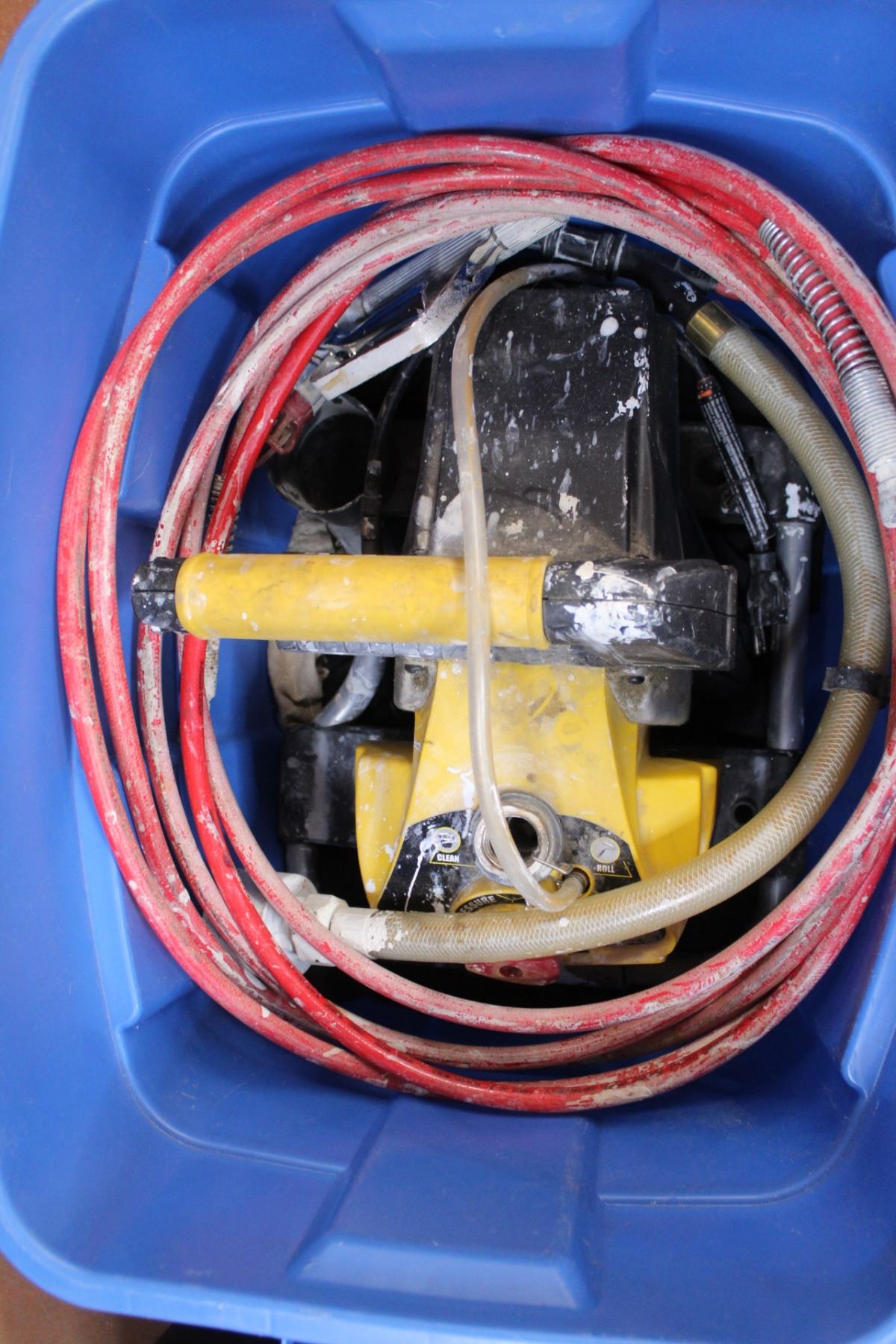 *Wagner Procoat Paint Sprasyer w/Line & Gun/Tip (Untested, Unknown Condition) Rubbermaid Tote w/Lid & Rags, 8", 12" Extensions Included