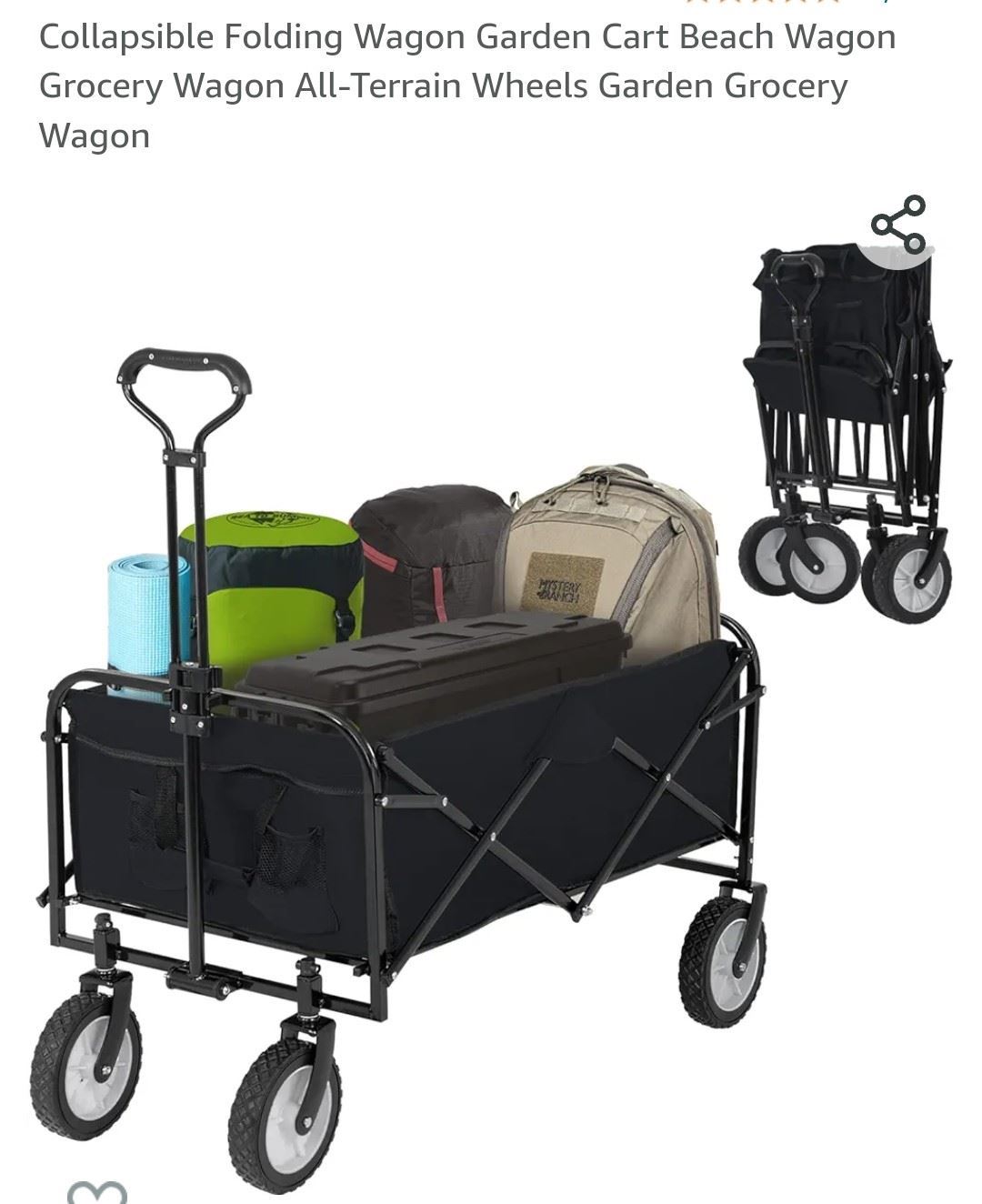 All-terrain utility wagon with durable wheels and adjustable handle, foldable design for easy storage, new.