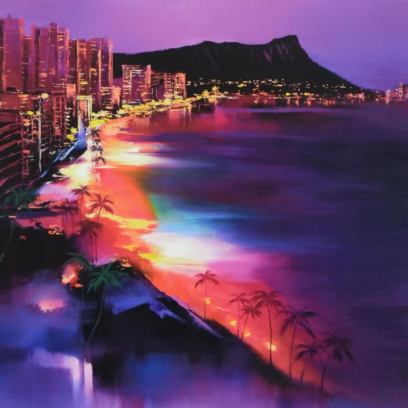 "Waikiki Night" is a limited edition giclee on canvas by H. Leung, numbered and hand signed by the artist. Includes Letter of Authenticity. Measures approx. 24" x 40" (image).