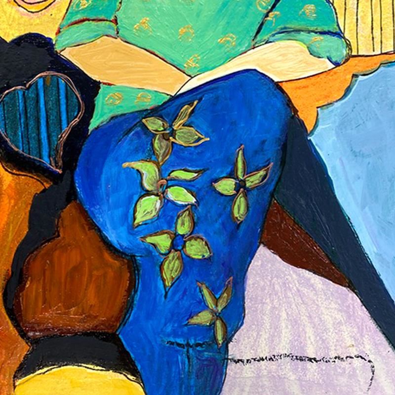 "Waiting" is a one-of-a-kind mixed media over paint on wood by Itzchak Tarkay (1935-2012), hand signed by the artist. Includes Letter of Authenticity. Measures approx. 11.5" x 8" (image).
