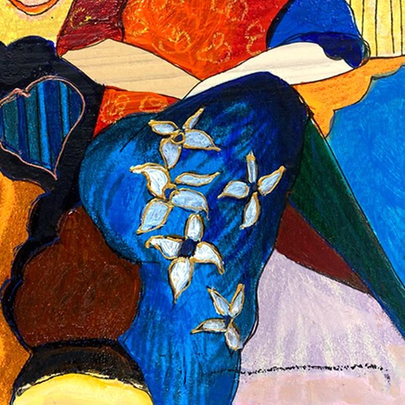 "Waiting" is a one-of-a-kind mixed media over paint on wood by Itzchak Tarkay (1935-2012), hand signed by the artist. Includes Letter of Authenticity. Measures approx. 11.5" x 8" (image).