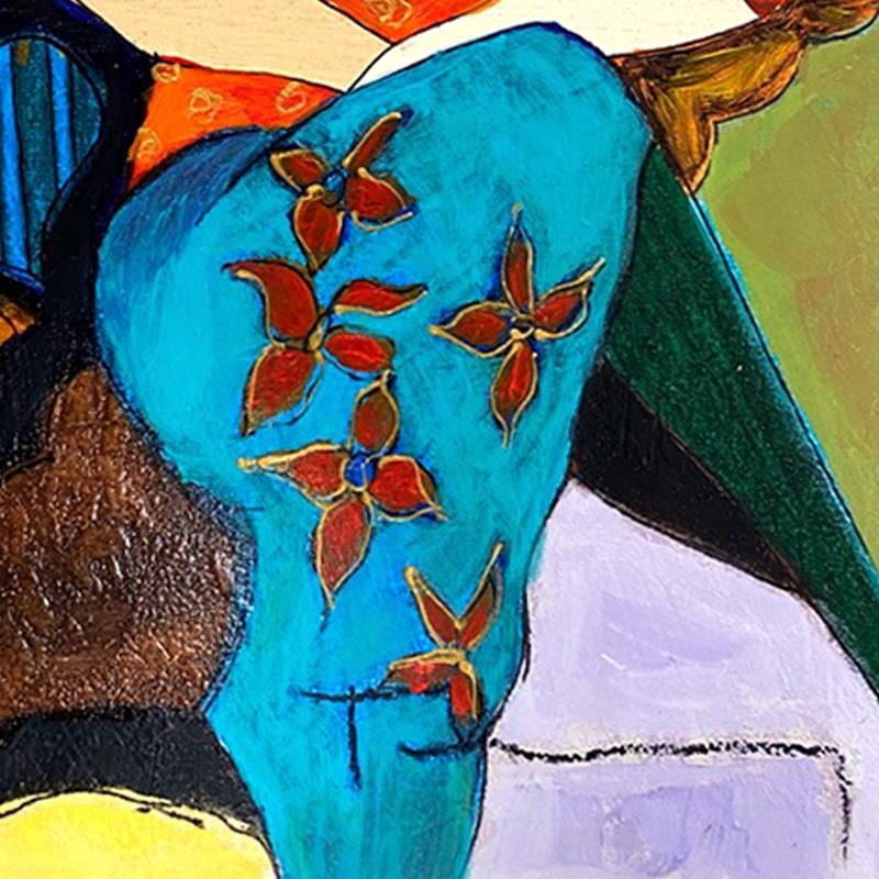 "Waiting" is a one-of-a-kind mixed media over paint on wood by Itzchak Tarkay (1935-2012), hand signed by the artist. Includes Letter of Authenticity. Measures approx. 11.5" x 8" (image).