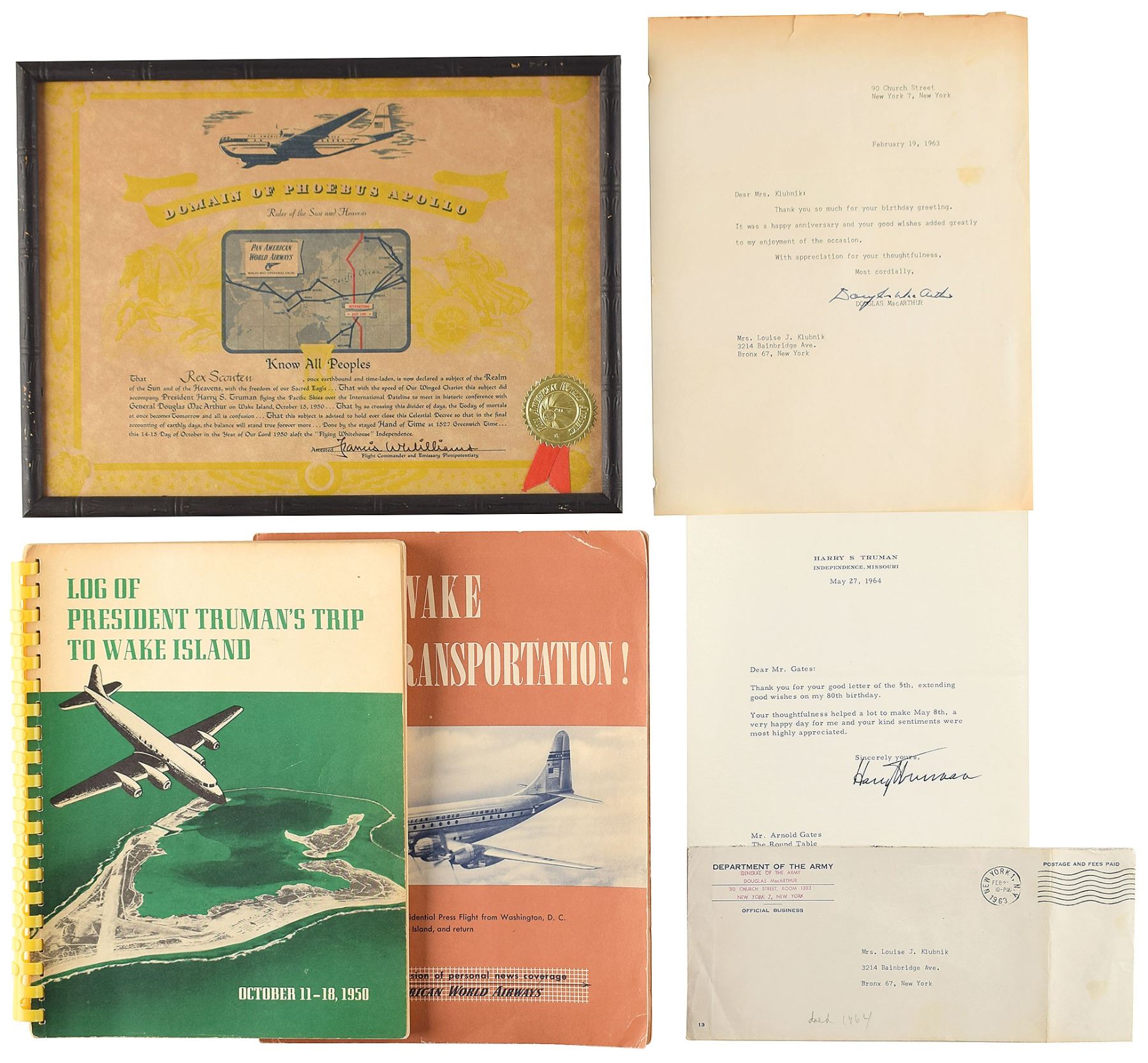 Group of items representing the meeting between President Harry S. Truman and General Douglas MacArthur at the Wake Island Conference, where they discussed progress and war strategy for the Korean Peninsula: