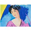 Oil on paper. Featuring portrait of a woman in a purple shirt. Signed "Walasse Ting" to the bottom right. Attributed to Walasse Ting (1929-2010, Chinese-American). 28 x 19 cm, (11 x 7.5 in). Provenance: This lot carries limited provenance from a Southern Ontario estate.