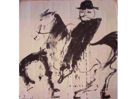 SAM ON HORSEBACK, Sumi ink drawing on paper, 73 x 73”, tears, folds, paper loss. $600/900