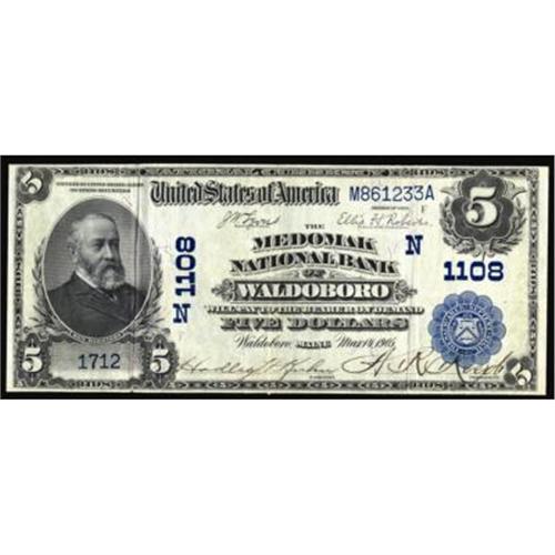 Waldoboro, ME $5 1902 Date Back. The Medomak NB.