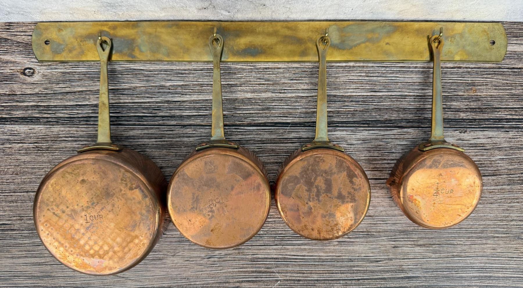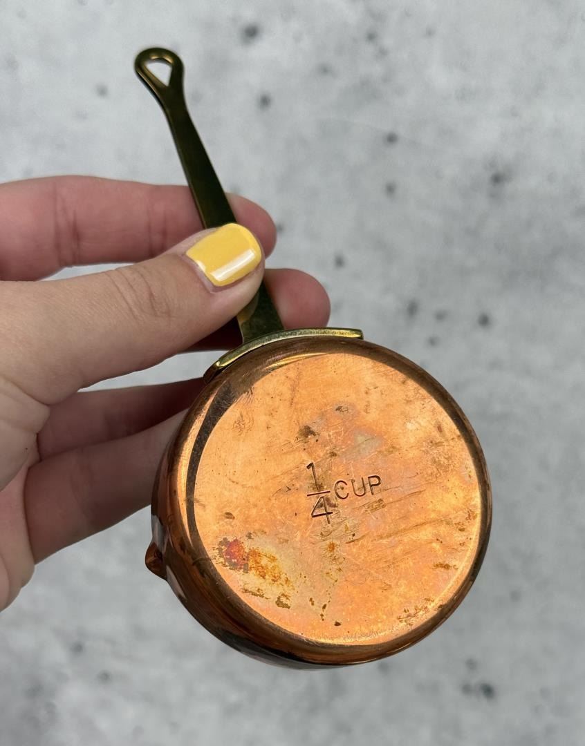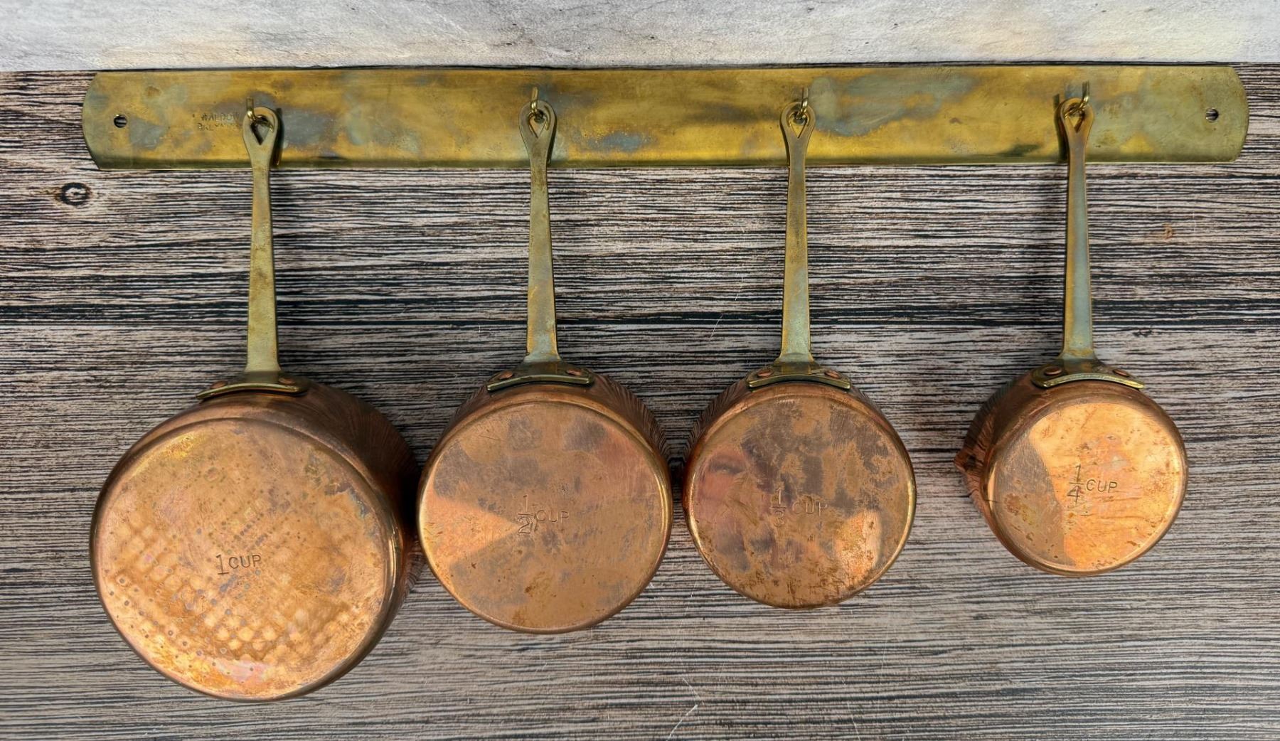 Comes with hanger. 1 cup, 1/2 cup, 1/3 cup, and 1/4 cup