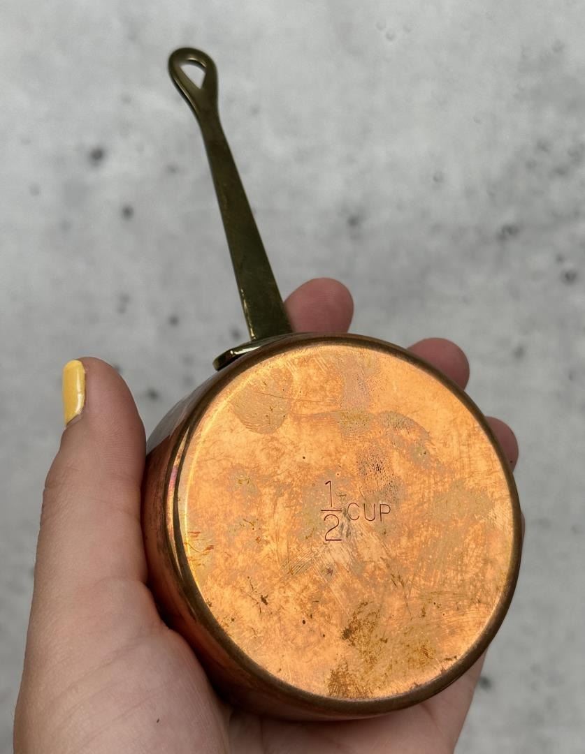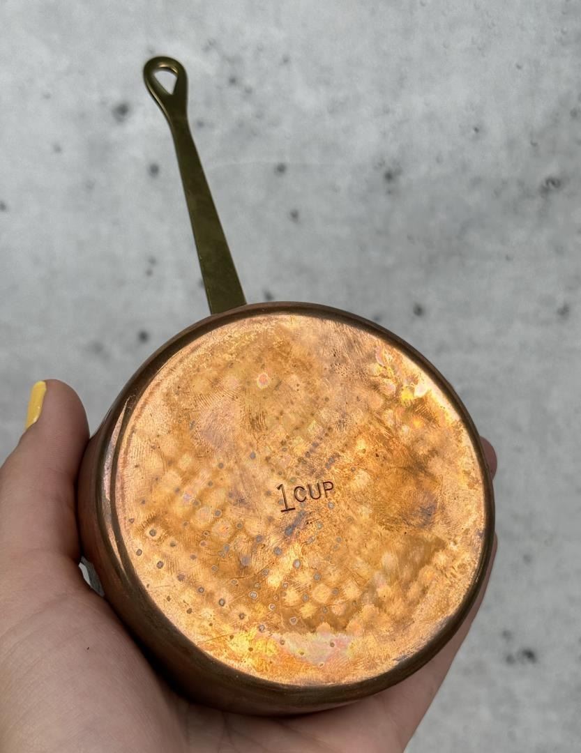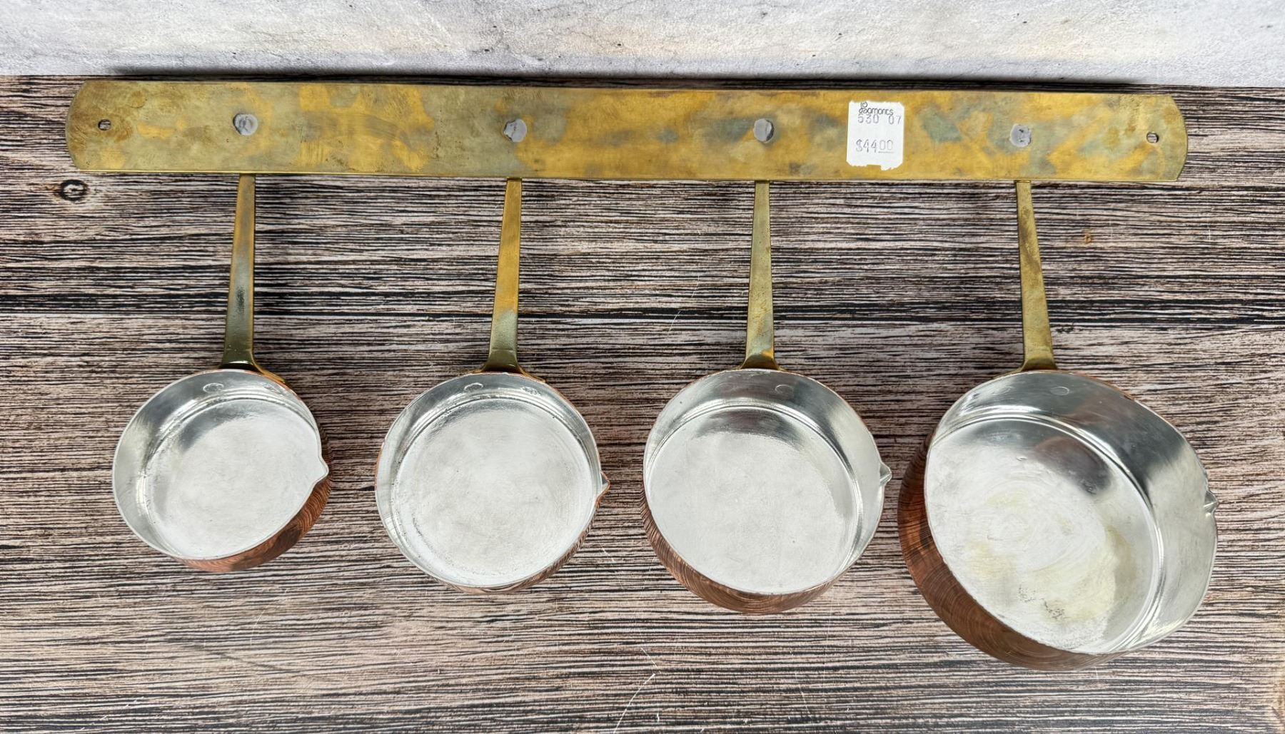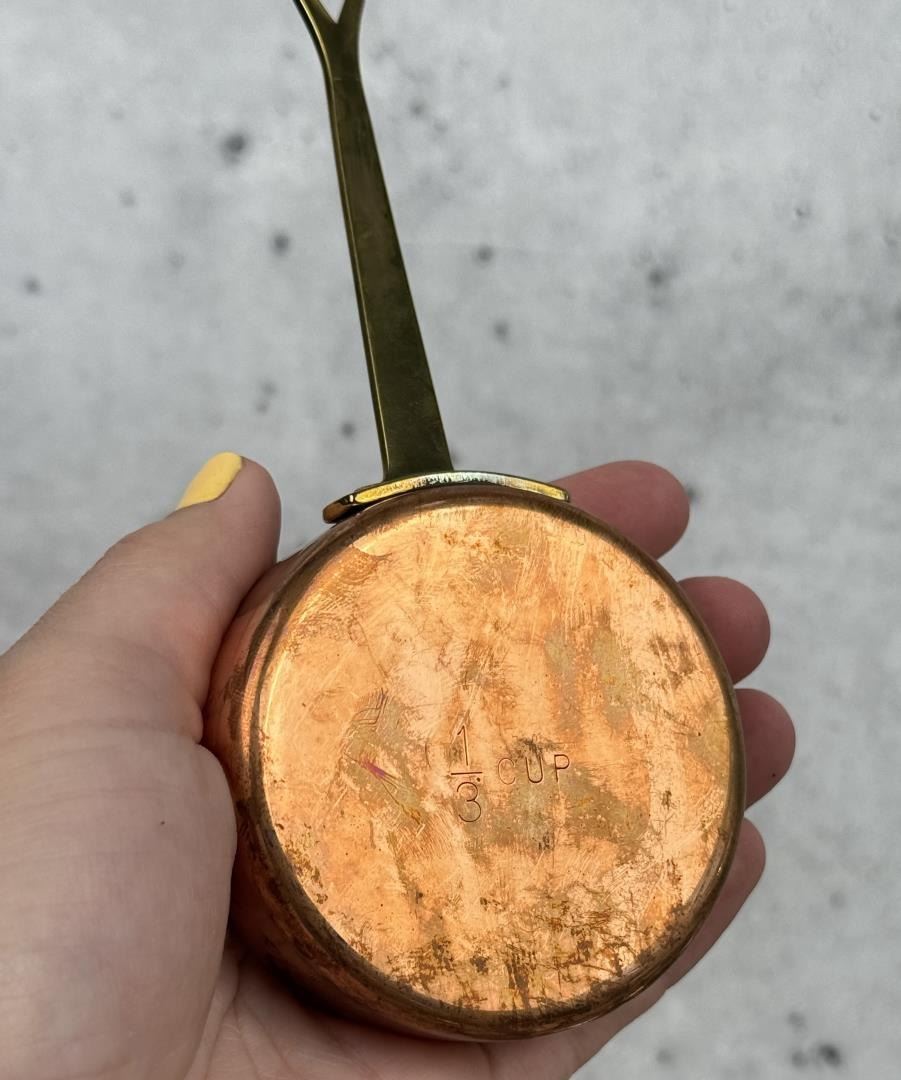 Comes with hanger. 1 cup, 1/2 cup, 1/3 cup, and 1/4 cup
