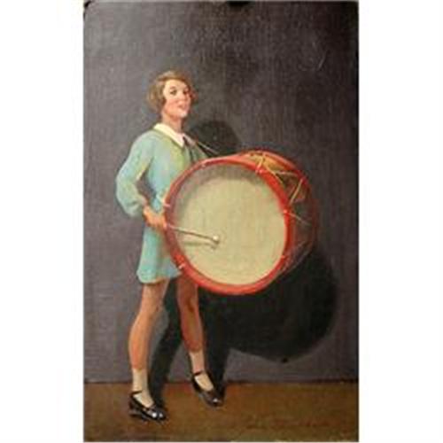 "Walk Up , Walk Up, Its Ready !" Young Girl with Base Drum by Harry John Pearson </em></td>