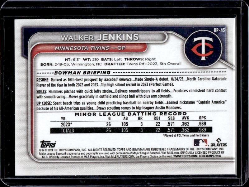 Walken Jenkins 1st Bowman 2024 Bowman #BP-43