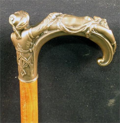 Walking Cane with Erotic Figural Bronze Handle.