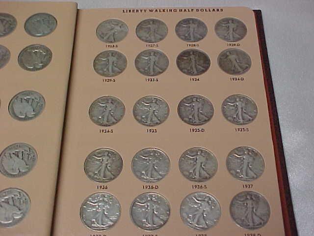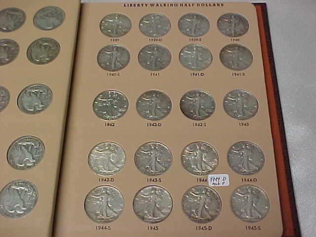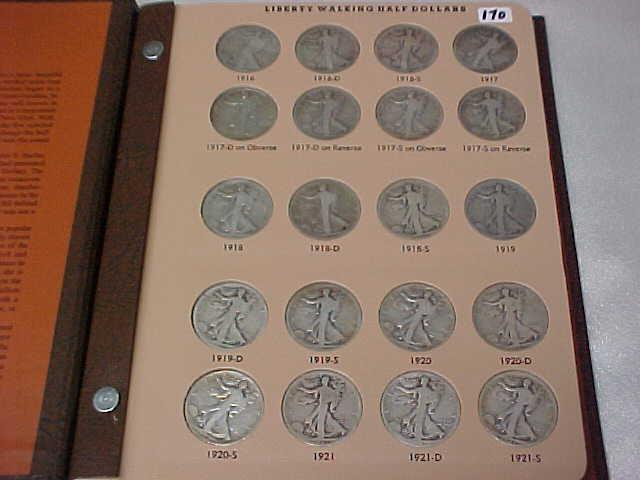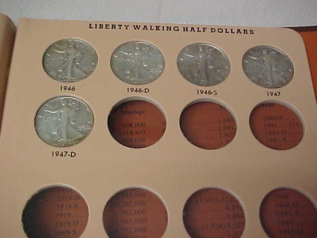 Dansco Walking Liberty Half $ Book, 65 Coins, 1916-47D, complete except 2-44D, no 44P, AG-BU