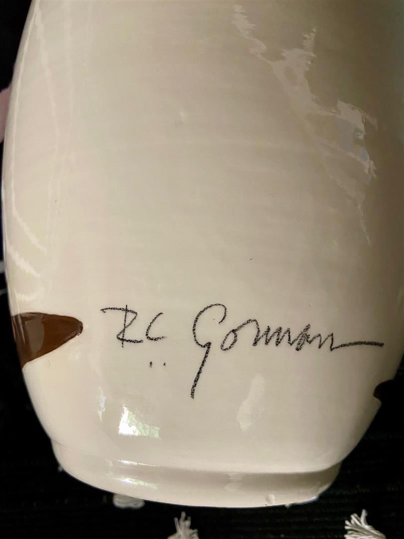 RC Gorman's stunning 17x11" ceramic vase is from a series he did in his traditional Santa Fe colors. It is hand signed