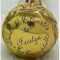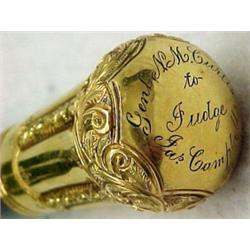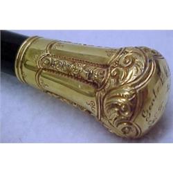 Walking stick with gold filled handle, engraved on handle Genl N M. Curtis to Judge Jas. C. Campbell, with engraved decoration, 35", C.1900 Estimate 80/150