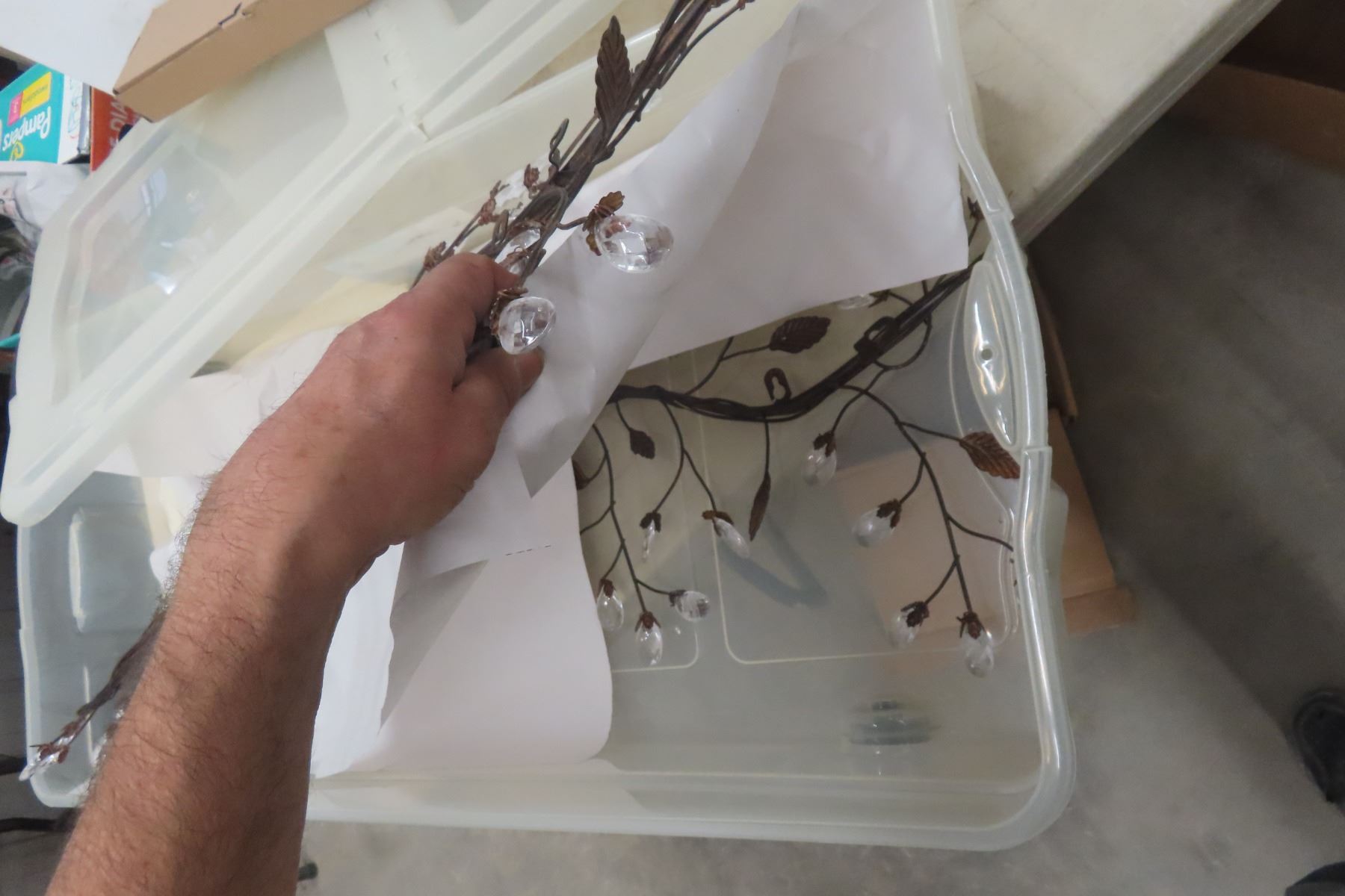 Wall Art - 2 Wrought Iron with Prisms + Underbed Bin + New 60" x 48" Blind