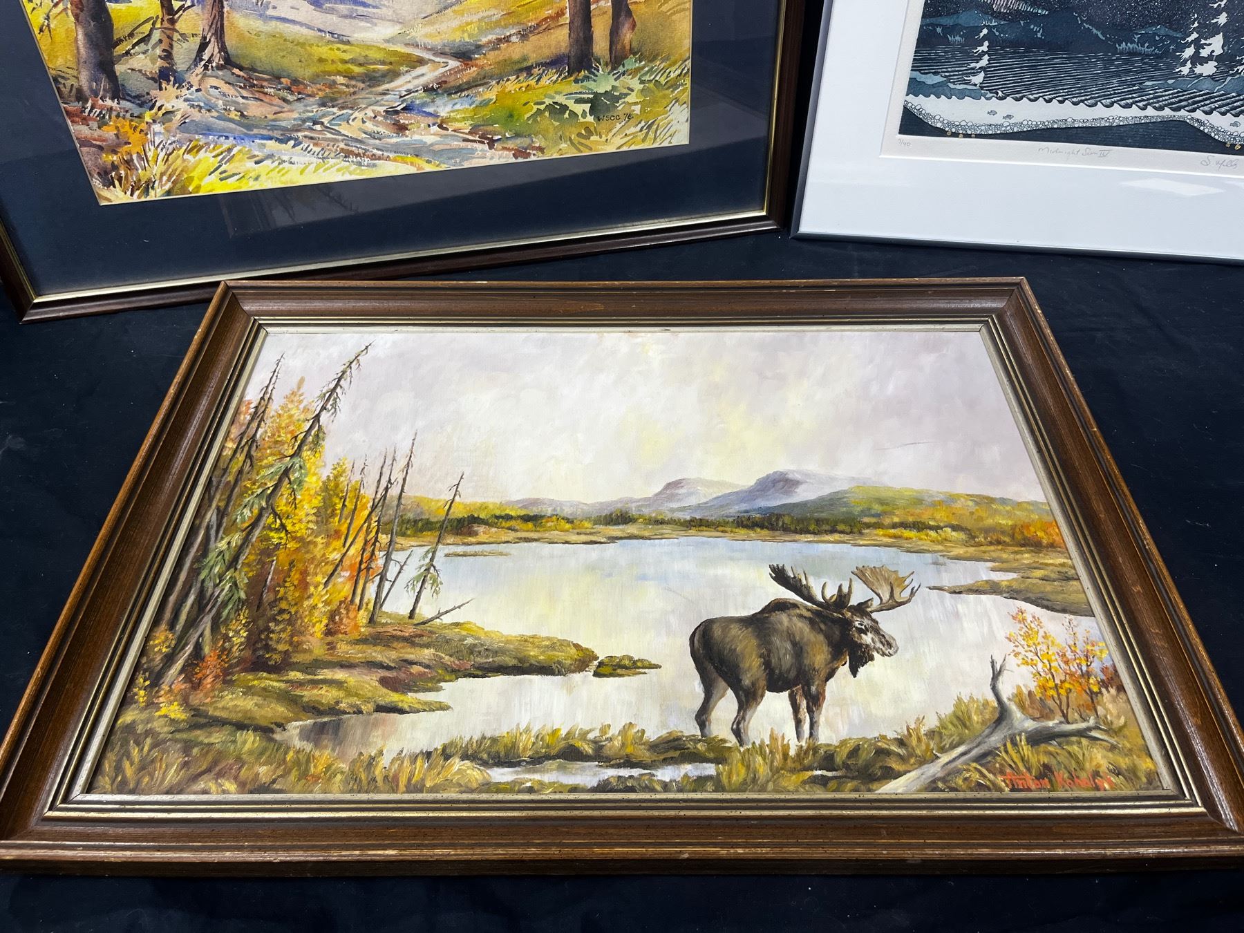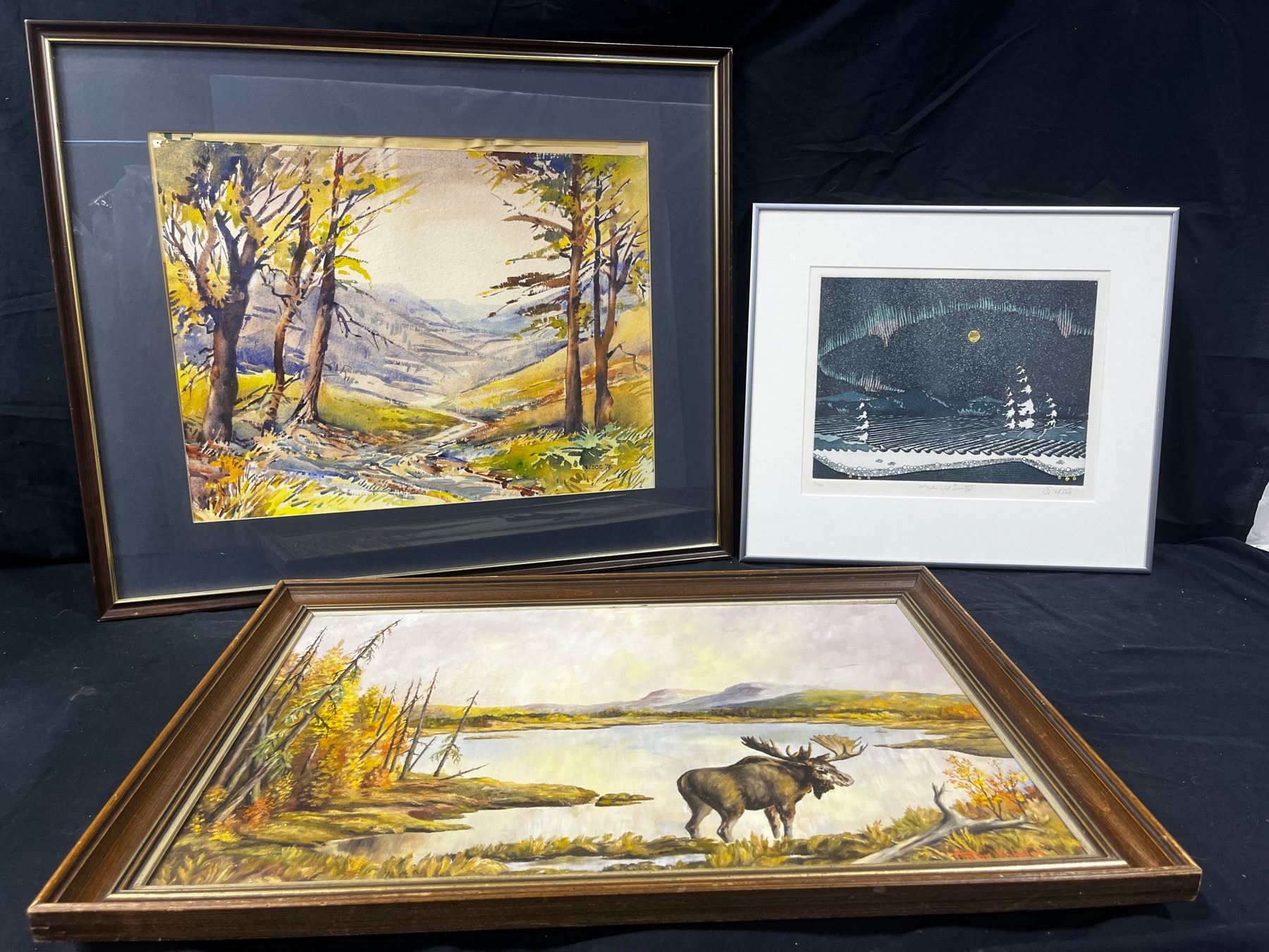 3pcs Wall art décor. Lg=26"L x 22"W.By:WSCC 7c. Med=26"L x 18"W.By:Anton Kohalyk (Morning Feed) Original #48 Feb.25,1973. Sm=18"L x 16"W. (Midnight sun 4) 7/40