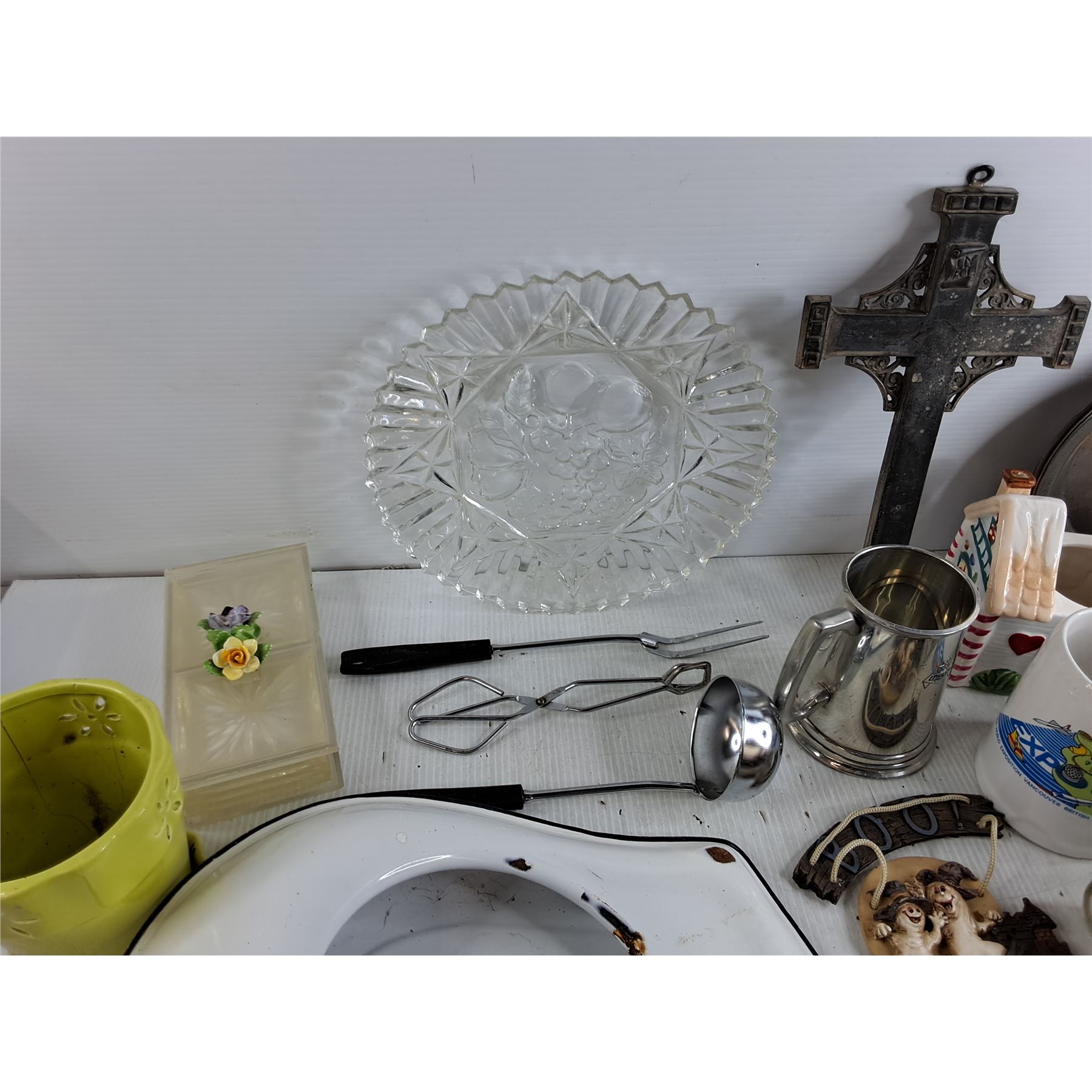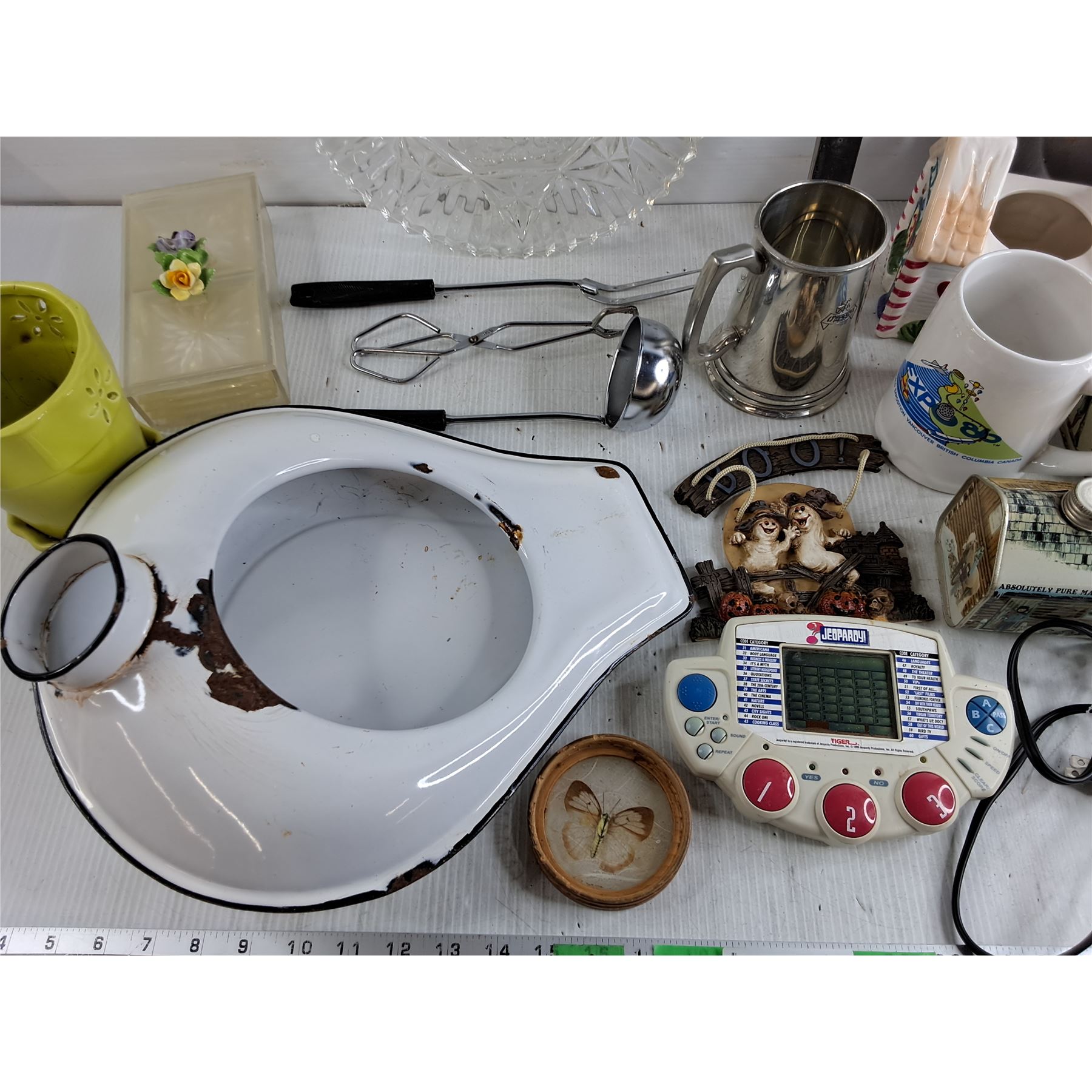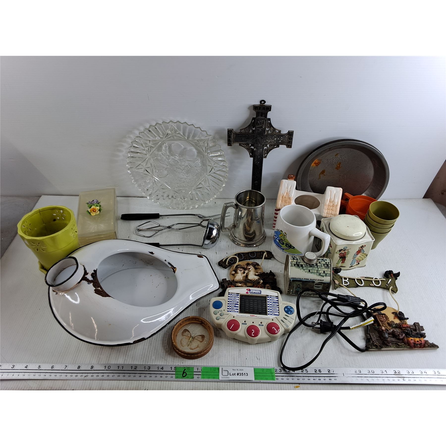 Wall Cross, Bed Pan, Mugs, Jeopardy Game, Boo Wall Decor, Utensils, Ceramic Planter, Misc