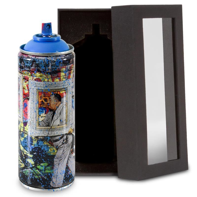 "Wall Frame (Cyan)" is a numbered limited edition hand painted spray can by Mr Brainwash from the 2020 Classic Spray Can Collection. Measures approximately 2.5" x 7.5".
