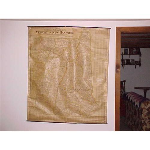 Wall Map , Vermont and New Hampshire, 40" wide X 47" long, edition No. 1118 , scale of miles , 1 1/4= 5 miles, showing counties- Townships-cities, villages--P.O. --steam and electric railroads; published by National Map Co. Home Office 32-34 E. Georgia, iNDIANAPPLIS, iND.--Eastern Office--119 Nassau St. ,; NY,NY, condition-good but used, very readable, metal top and bottom