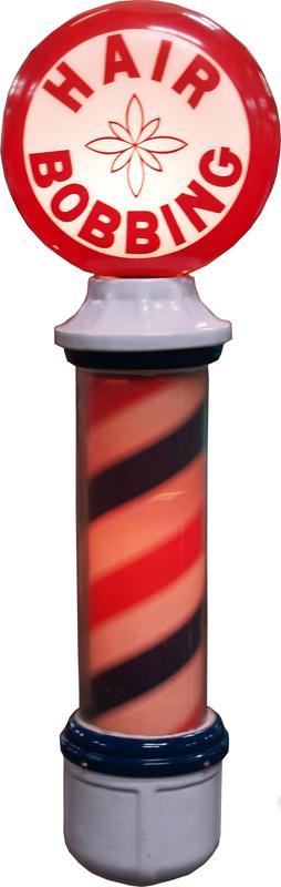 Wall Mount Barber Shop Trade Sign, MFG by Theo A. Kochs Company w/ very rare, all original "Hair Bobbing" c1930's top globe, in great condition.