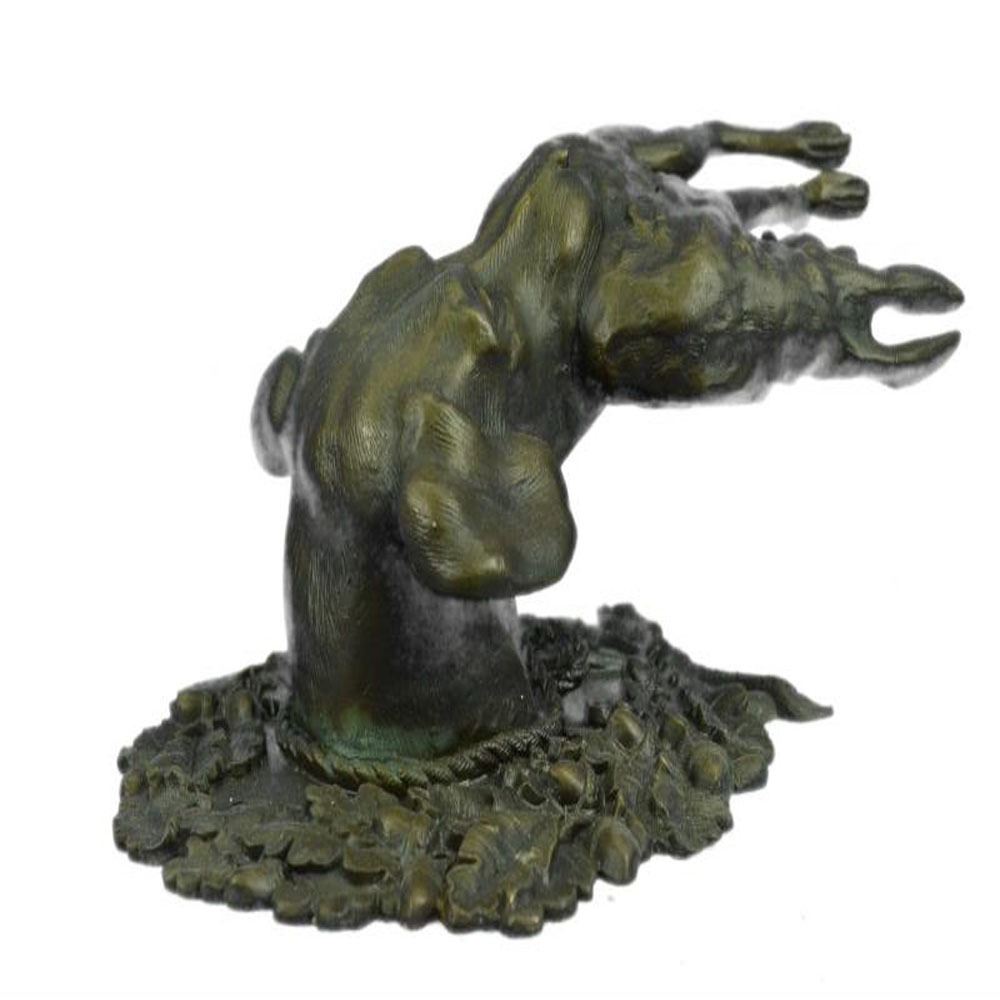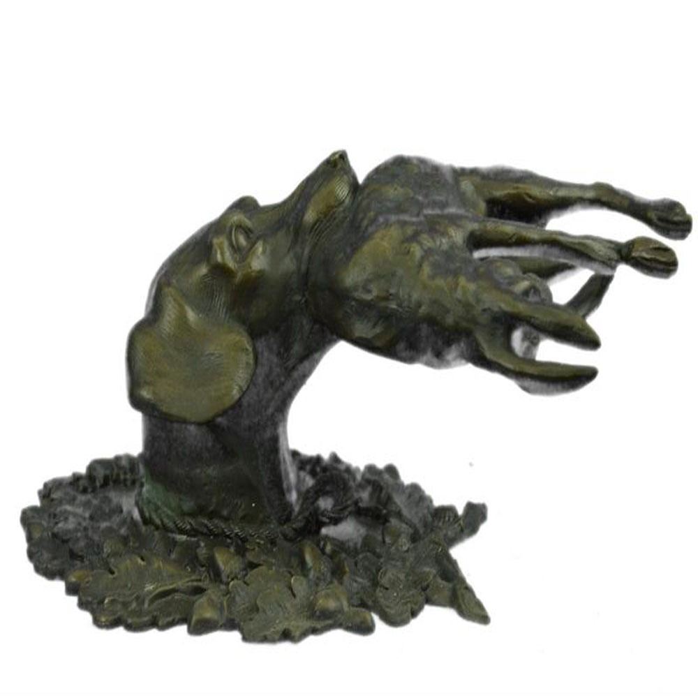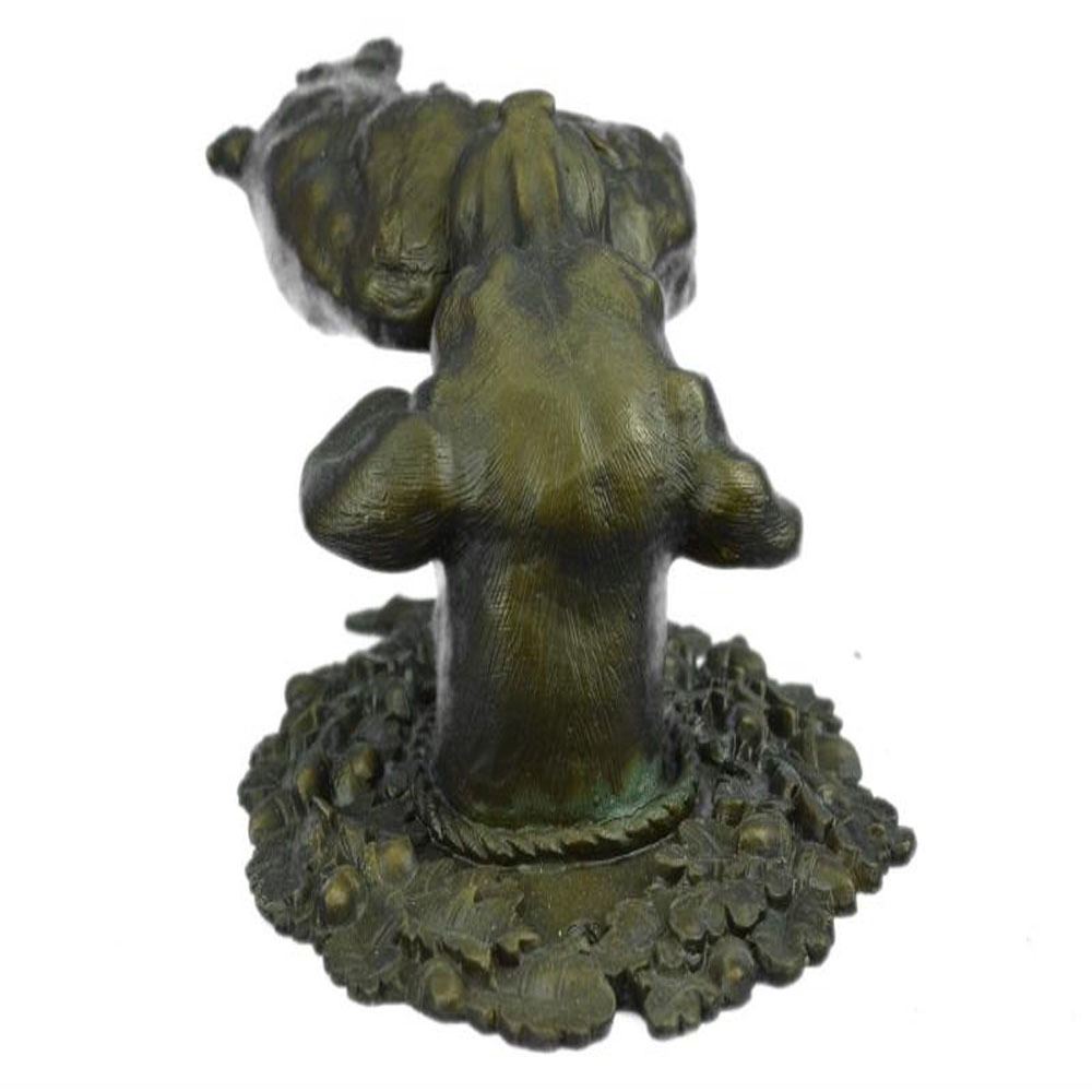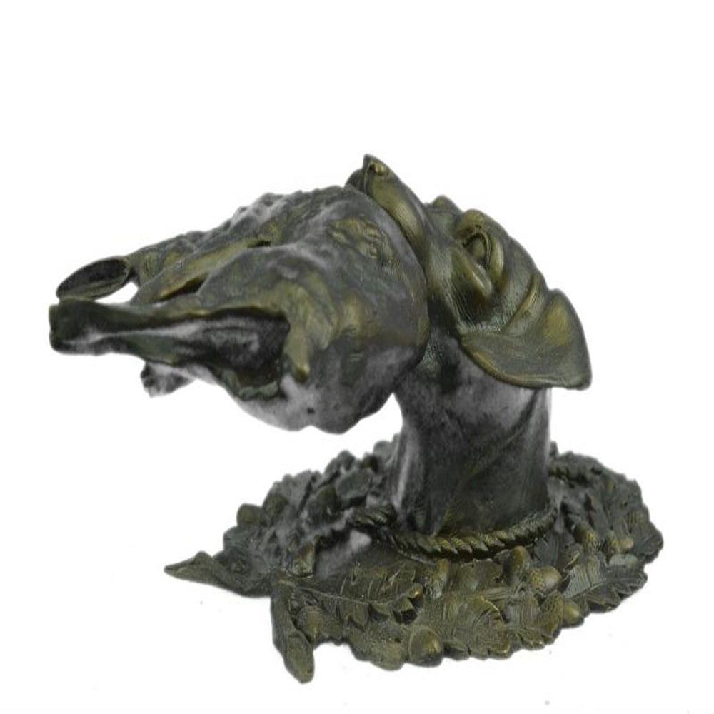 This Sculpture depicts a dog, possibly a hound, with a rabbit gripped in his mouth. The hound is slim and his ribs are pronounced. His tail wraps around him as he sits. His eyes gaze up to the right, likely looking at his owner with satisfaction over the effort it took to catch his prey. He still has a snarl over his mouth and you can see his teeth have a firm grip on the rabbit which lays limply by his waist. The piece has a rustic feel and has a two toned brown patina and can be mounted on wall. Bronze dimensions: Height 12 X width 7 inches. Weight: 7 LBS.