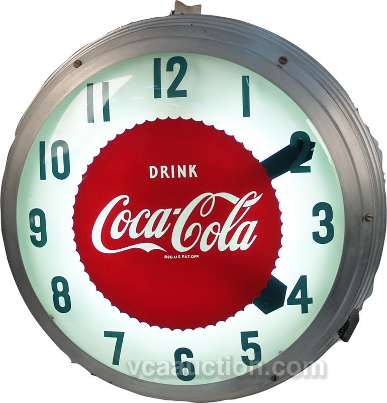 Wall Mount Metal & Glass Light-Up Diner Style Coca Cola Clock c1958 - 22" diam
