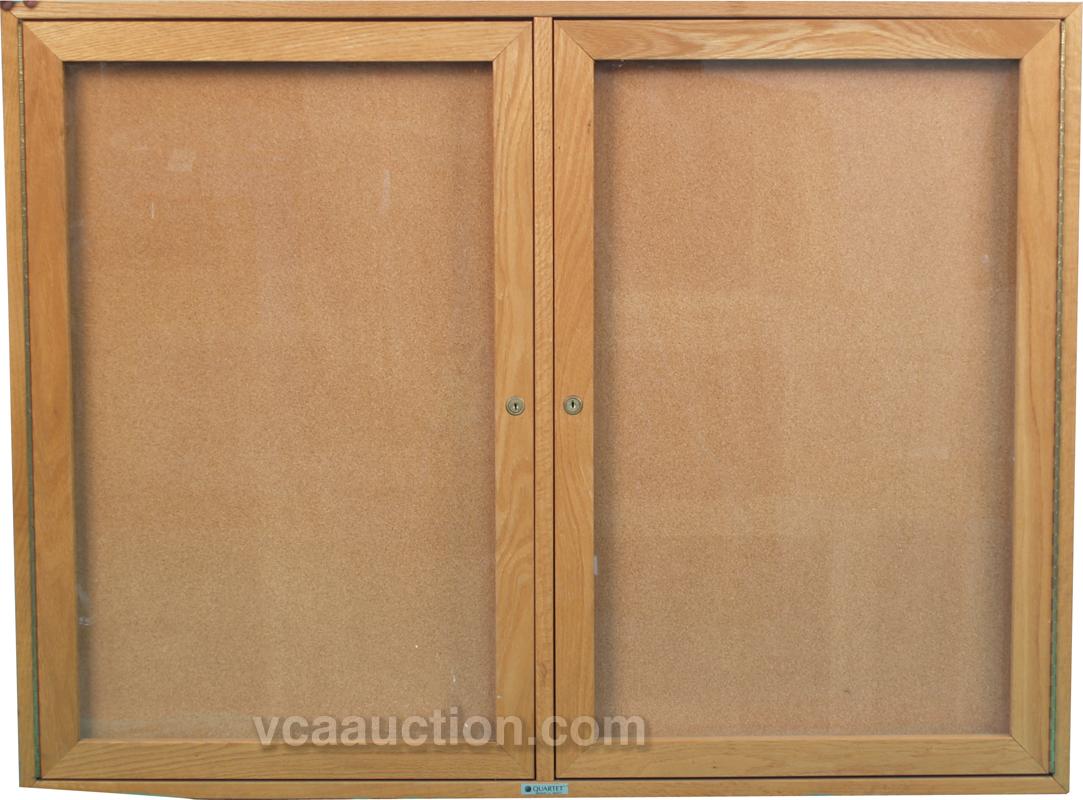 Wall Mount Oak 2 Door Display Case w/ Cork Board Backing w/ Key - 49" x 36"