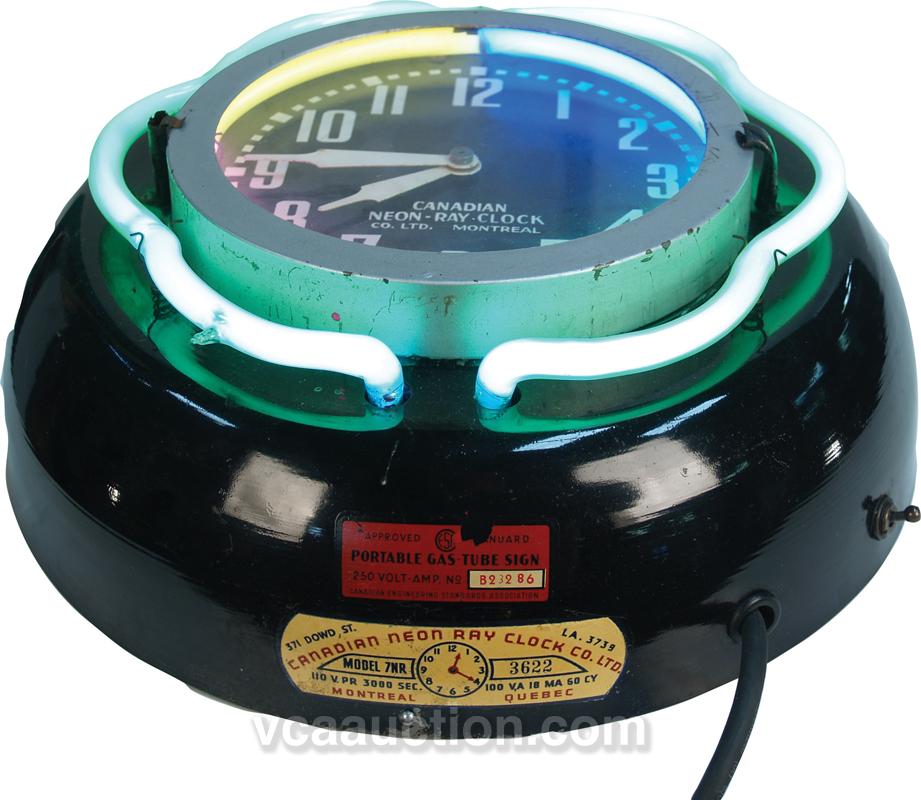 Wall Mount Porcelain & Neon Canadian Neon-Ray Clock c1940's, original porcelain - approx. 12" diam