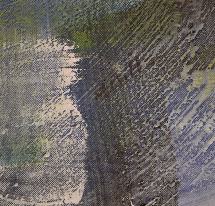 Artist: M Wall - Title: Untitled - Medium: Original Acrylic on Canvas - Signature: This one-of-a-kind work is hand-signed by the artist at the bottom of the image - Image Size: Approximately 42 inches x 54 inches - Framed: Unframed on Unstretched Canvas