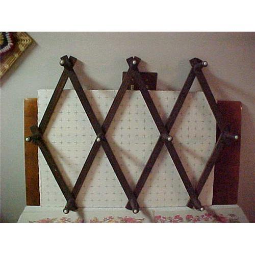 Wall Rack,folding , coats & Hats, white porcelian, knobs; dark hardwood finish; fully extended 40 plus inches; (c)1800's' ready to hang on wall