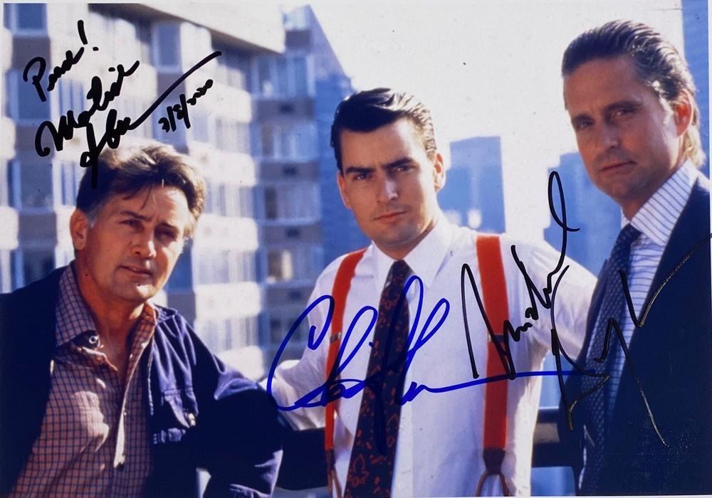Wall Street Martin Sheen, Michael Douglas and Charlie Sheen facsimile signed movie photo