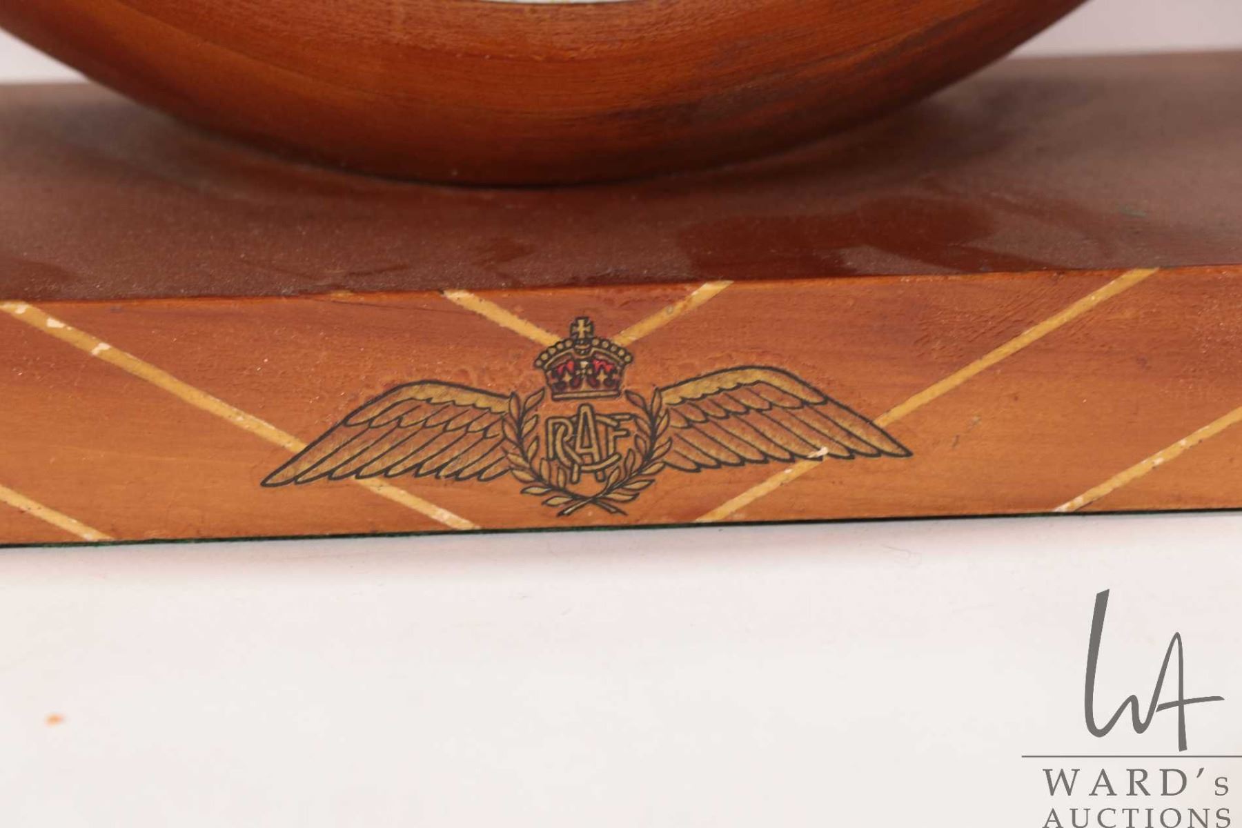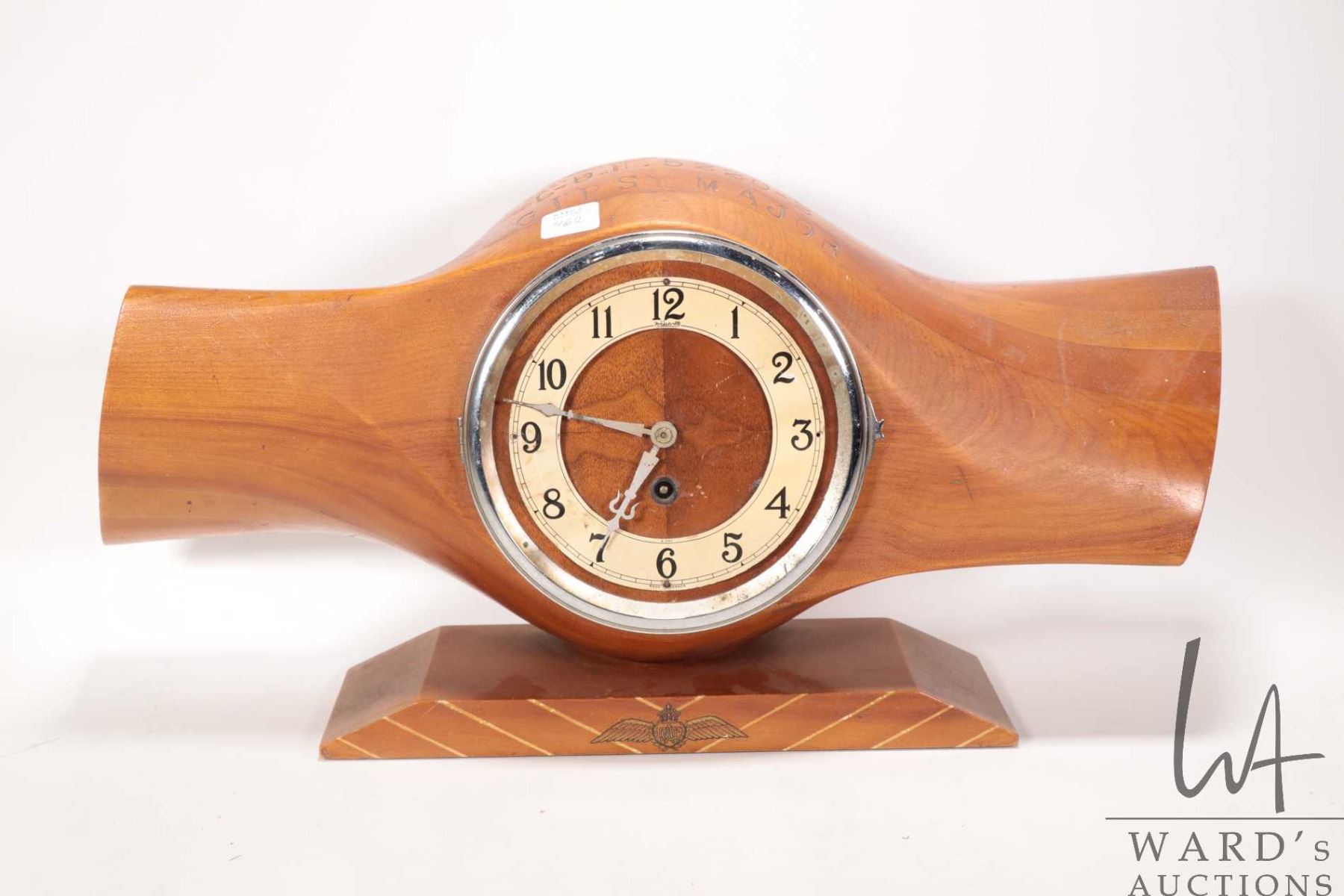 Wall clock fitted to a center section of a wooden propeller, marked Gypsy Major and labeled "FCAF",